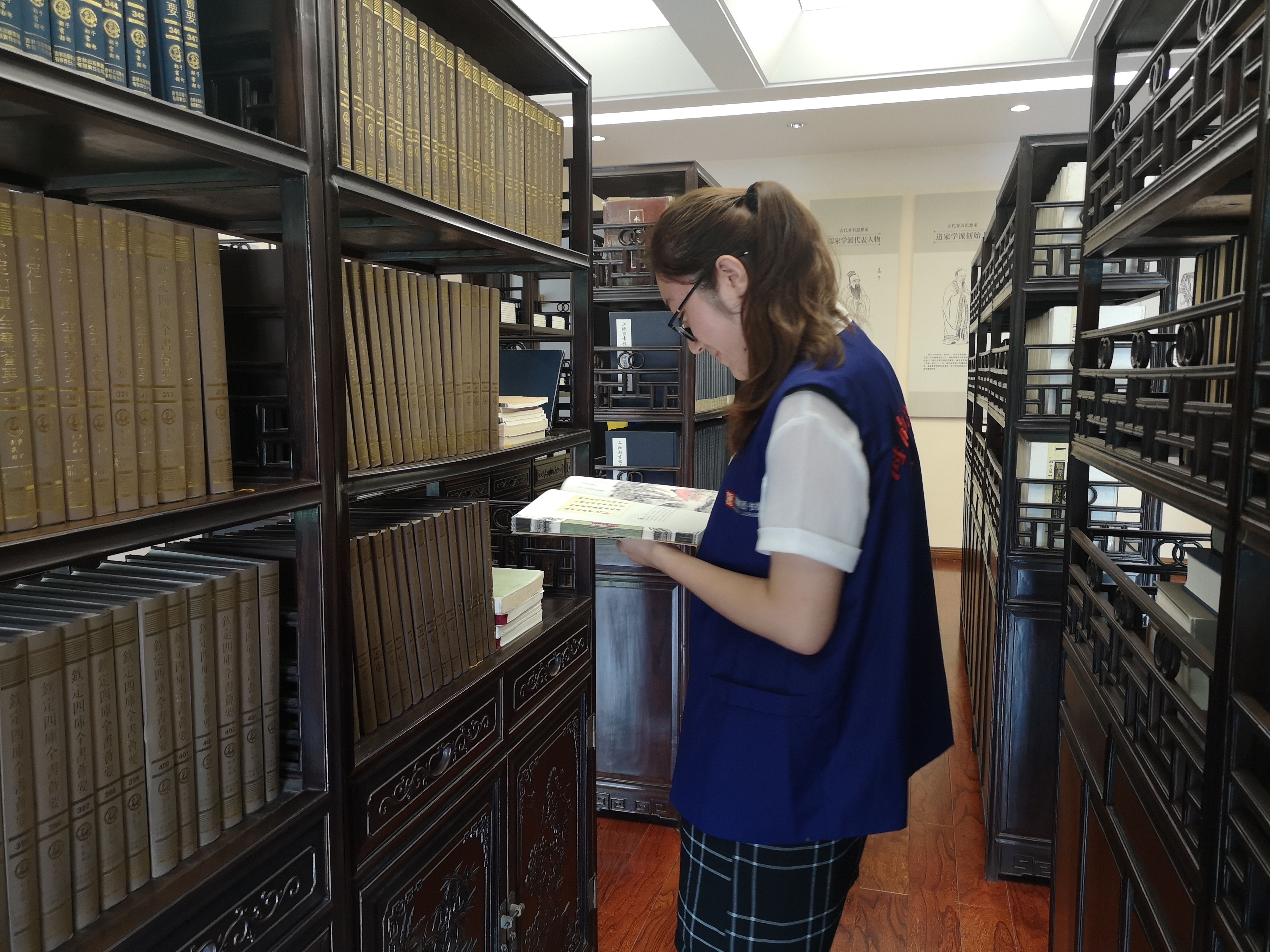志愿者翻阅书籍