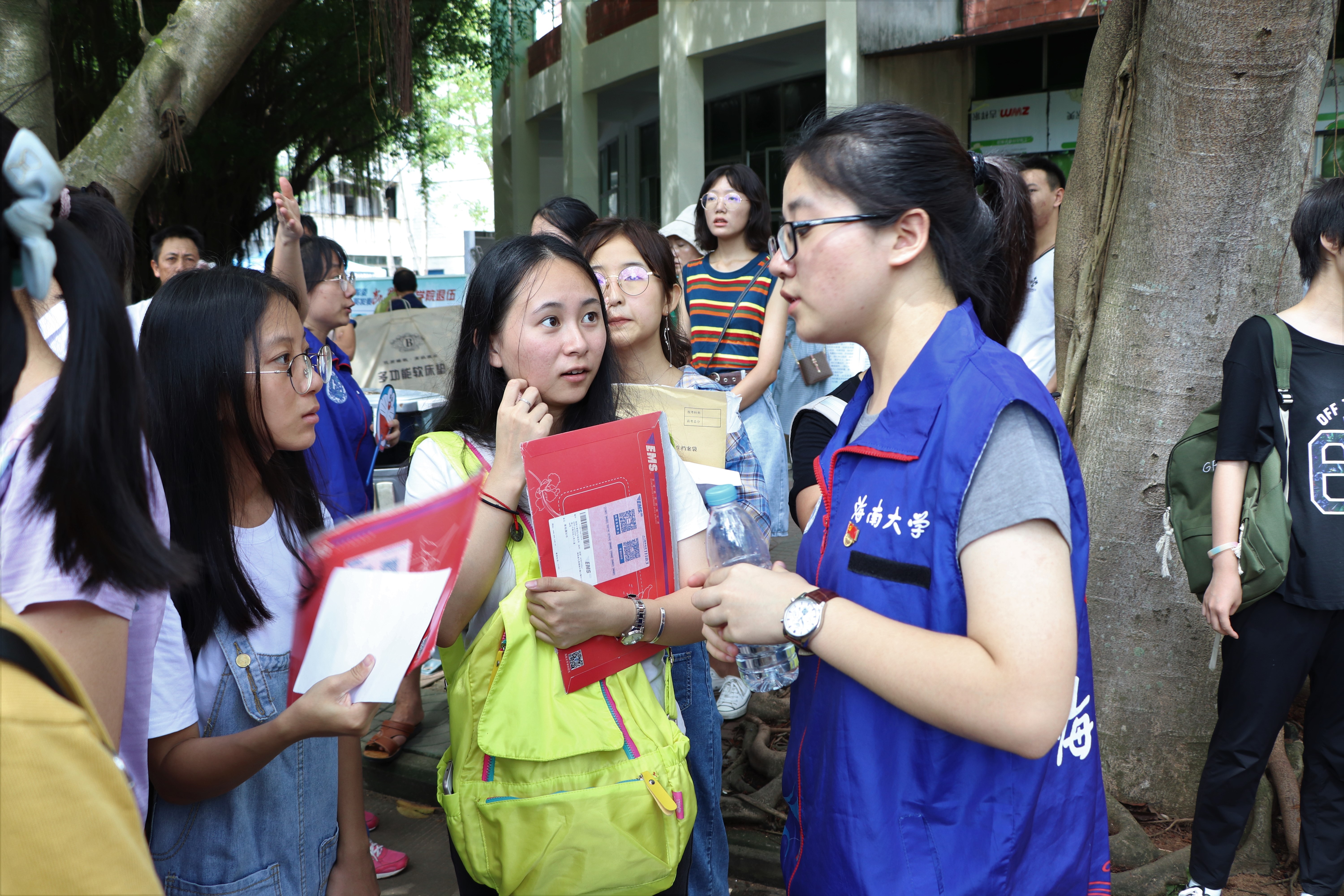 学生干部们分工明确,秩序井然。通过电子注册组、收集档案组、绿色通道组、党员服务组、宿舍分配组5个站点的协作配合,新生们有序地排队并按照流程报到。在新生报到过程中,海南大学副校长梁谋、叶光亮等校领导莅临了lol下注