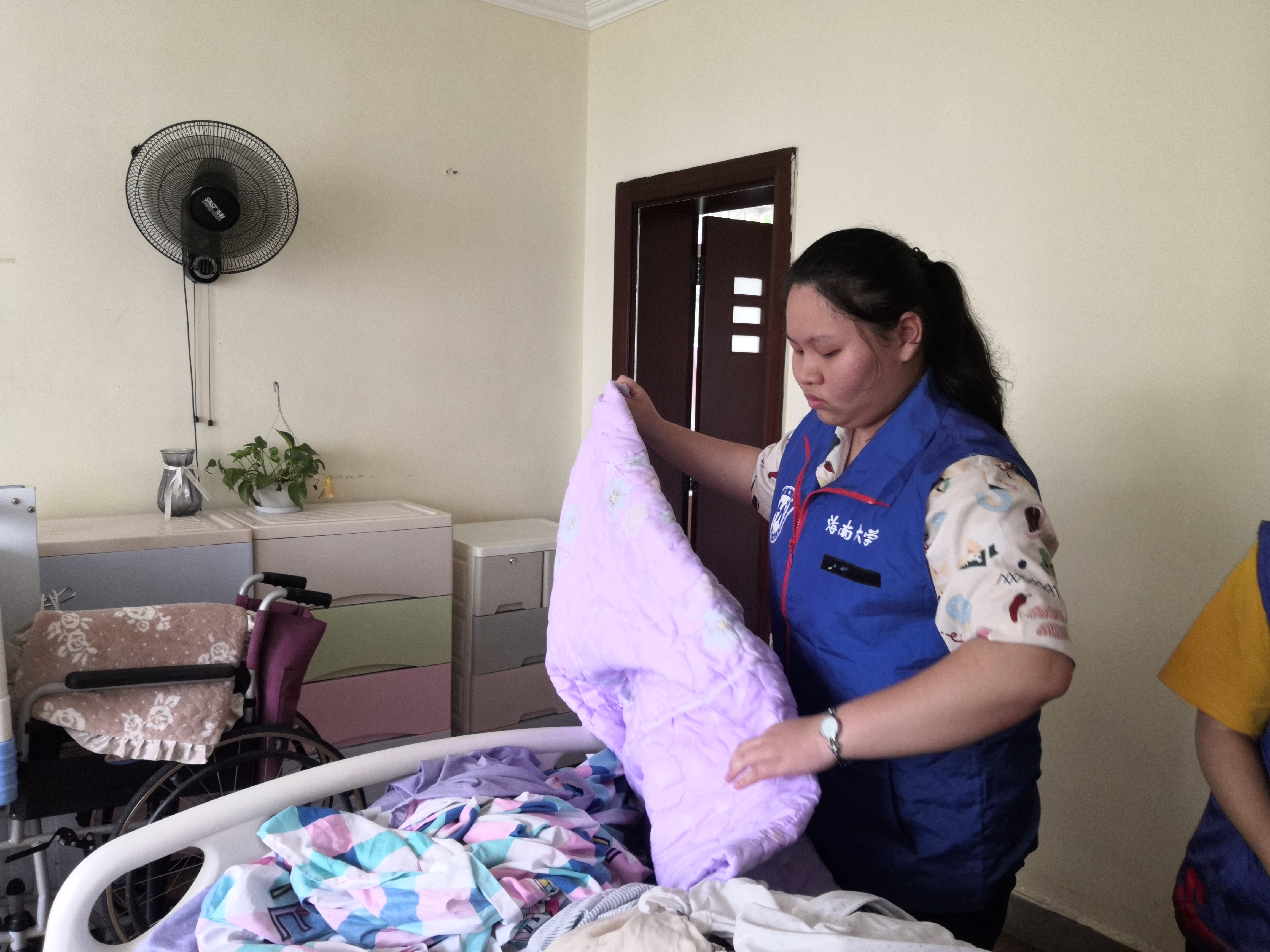 当日下午,志愿者们于海甸校区北门集合,随后一同乘车前往活动地点。到达活动地点,志愿者们在带队人员的安排下分成三个小组,有序地前往不同的楼层,开展此次的志愿活动。时隔一个暑假,老人们再次看到志愿者们时,都露出了喜悦的笑容。有的志愿者帮助护工们整理衣物,打扫卫生;有的志愿者陪伴着老人在暖阳下悠悠散步;还有的志愿者向老人们分享了自己在暑假期间做过的有趣的事,而老人们也兴致勃勃地同志愿者聊起了各地方的风俗文化。