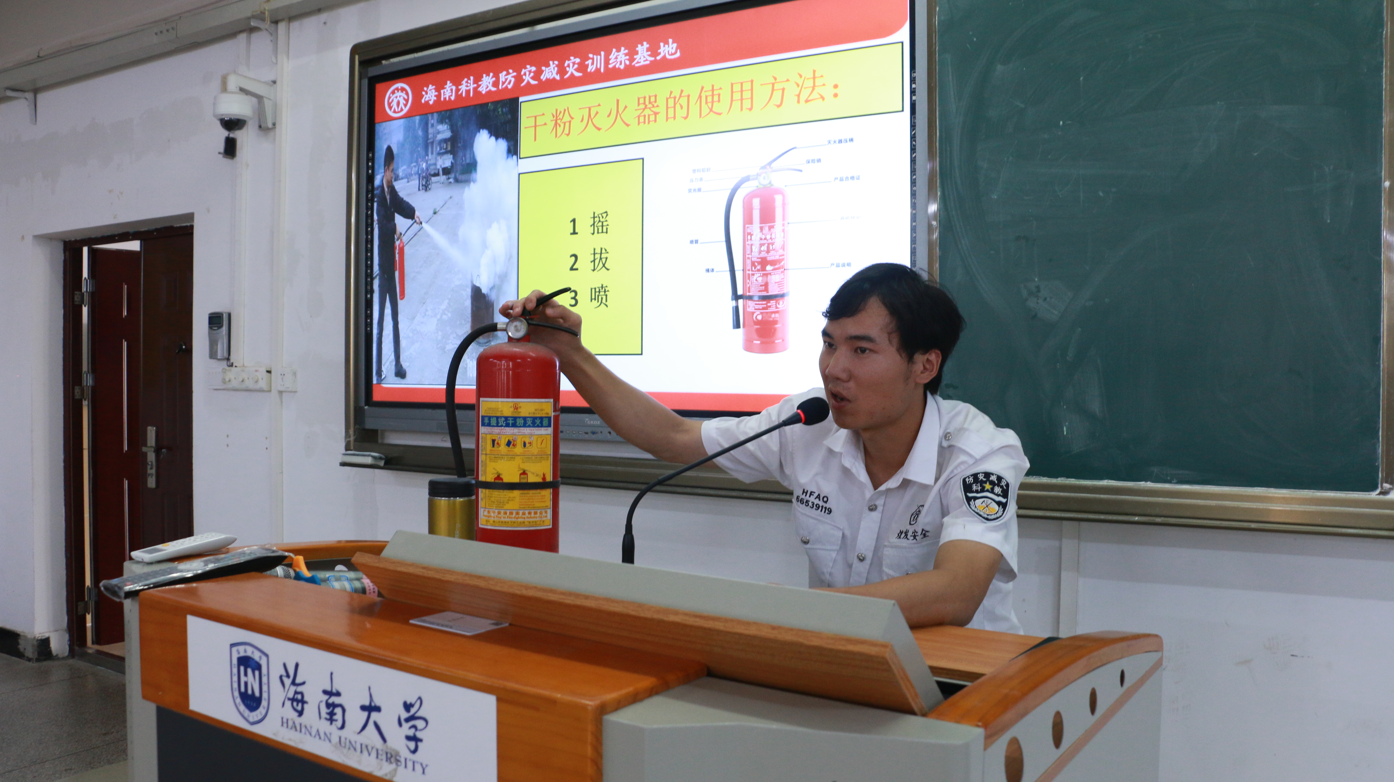 11月是全国消防月,为加强安全教育,提高学生防灾减灾意识,2019年10月29日下午3:00,防灾减灾安全知识讲座于海南大学城西校区6C01教室顺利开展。本次活动由海南科教防灾减灾训练基地教官谢艳平担任主讲人,辅导员李洁出席本次讲座。海南大学人文传播学院2019级全体新生参加了本次活动。