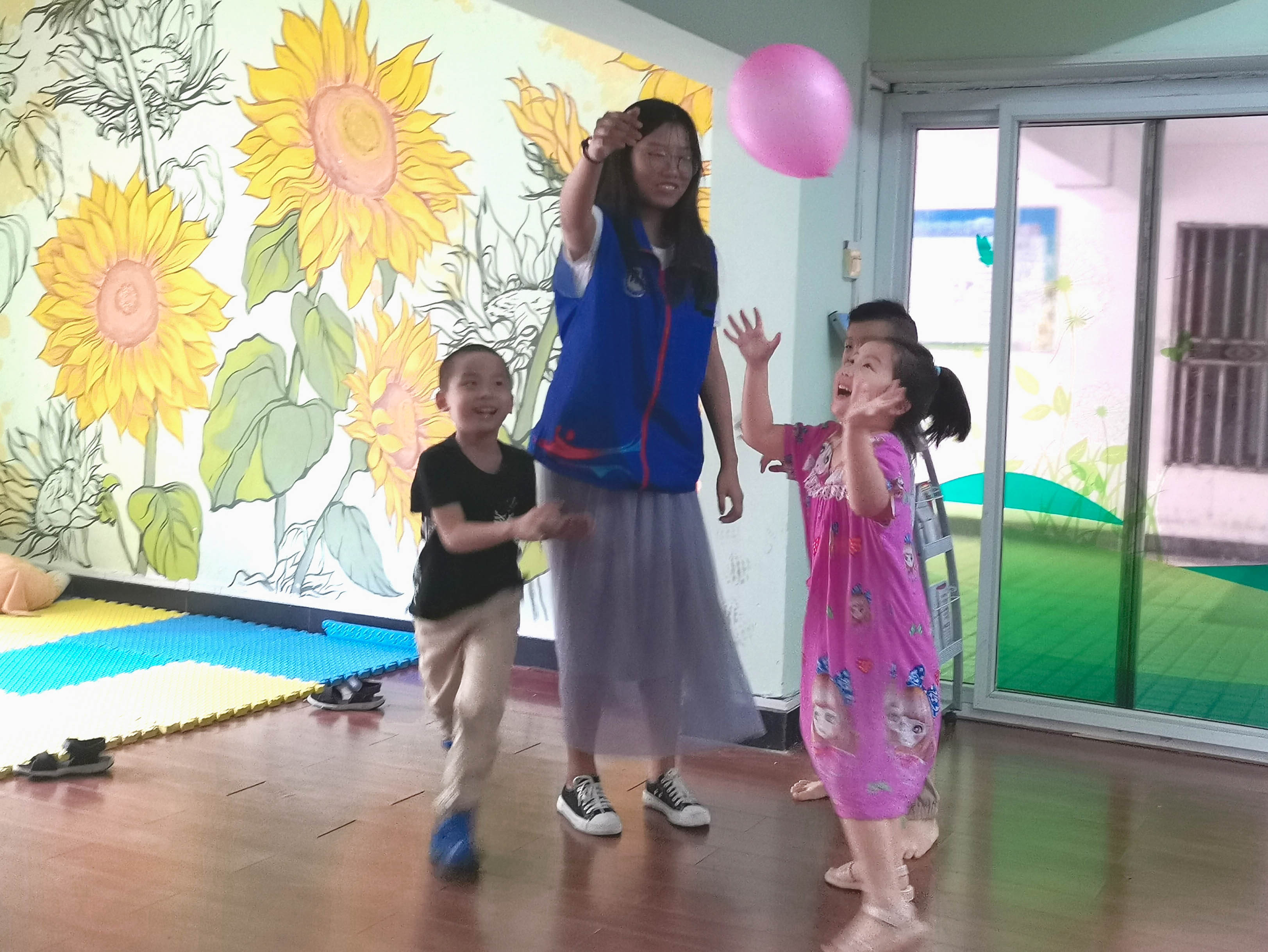 志愿者与孩子们做游戏