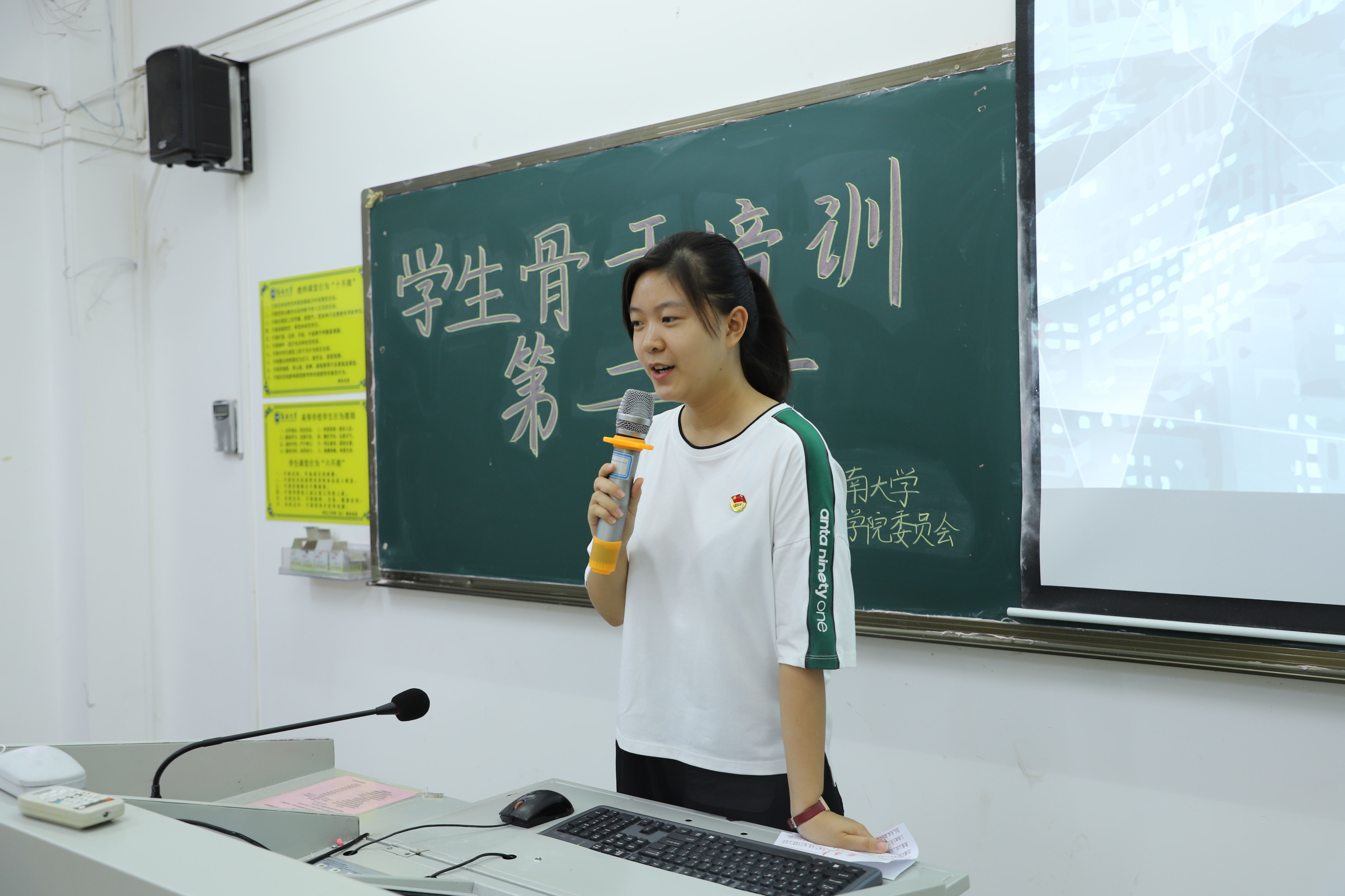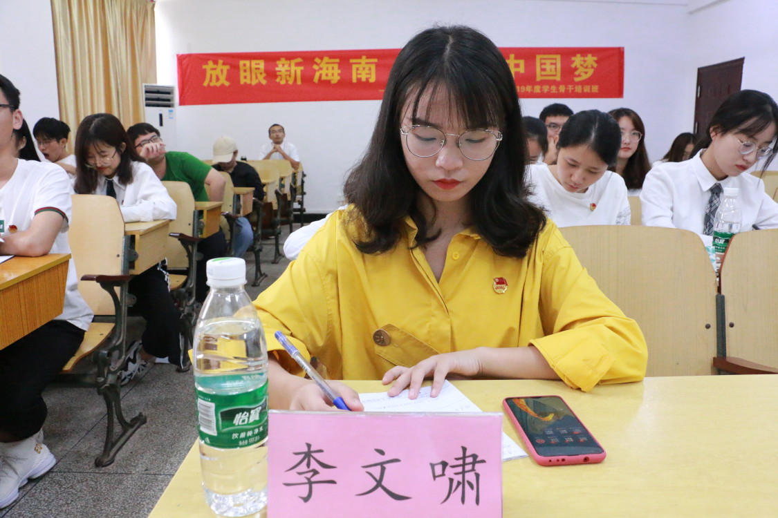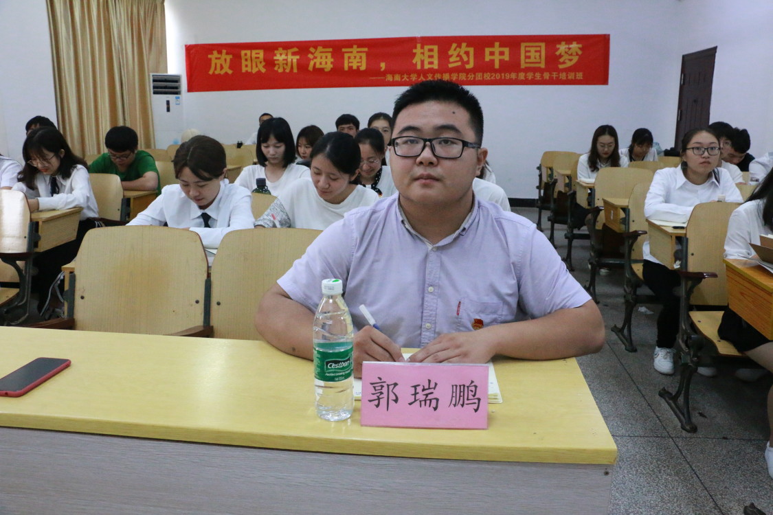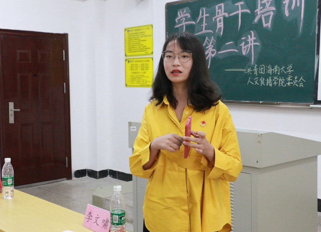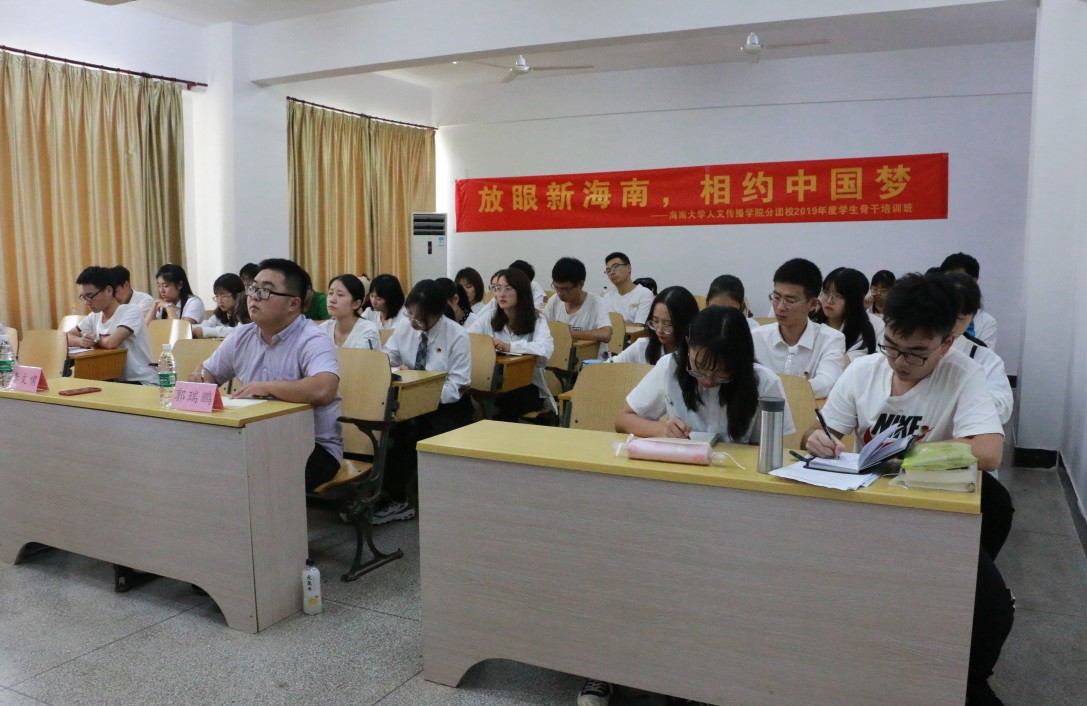 2019年11月12日下午,海南大学人文传播学院分团校2019级学生骨干培训班第二讲在城西校区教学楼顺利举行。此次培训分为团支部支委和学生组织两个分会场,分别在4A03和4A05同时进行。