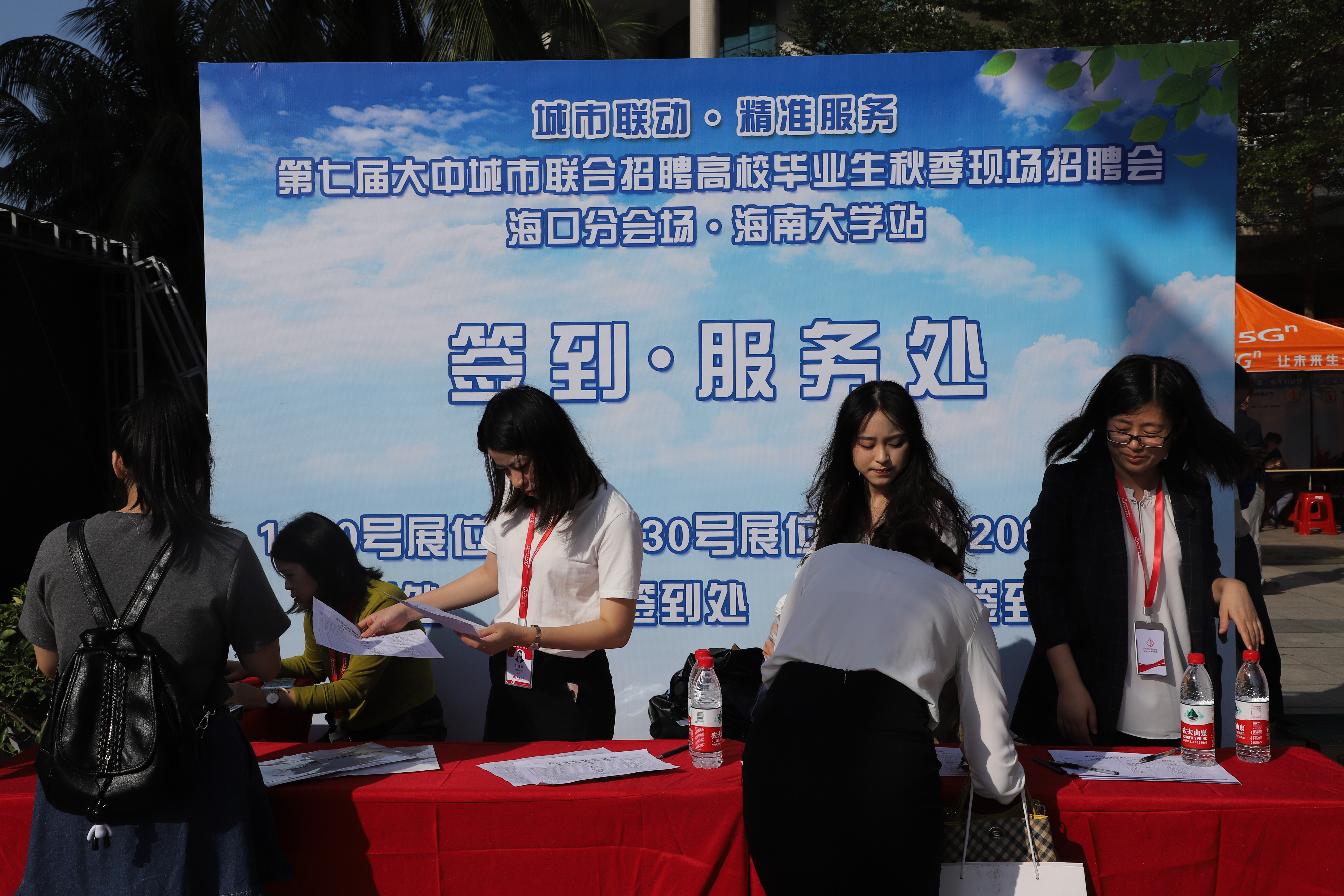 在海南省加快建设自由贸易区(港)的大背景下,海南大学招生就业处积极响应《人力资源社会保障部办公厅关于开展第七届大中城市联合招聘高校毕业生专场活动的通知》精神,为应届毕业生求职择业和用人单位招聘人才,促进人力资源合理配置搭建平台、提供服务。据悉,此次招聘会比去年规模更大、参与企业更多,吸引了诸如椰树集团有限公司、苏宁易购集团股份有限公司等到场招聘。前来应聘的应届毕业生积极投递简历并与用人单位招聘人员展开双向交流。同时,也有非毕业班学生来到现场,提前了解招聘、就业情况,进一步完善自身的职业生涯规划。现场人头攒动、气氛高涨。碧桂园凤凰国际招聘工作人员在采访中表示,公司更看重应聘者的专业知识对口性与实践经历。她同时提到海南大学毕业生具有多方面的比较优势,例如综合素质强、积极关注就业信息,主动与企业接触,具有前瞻性等。