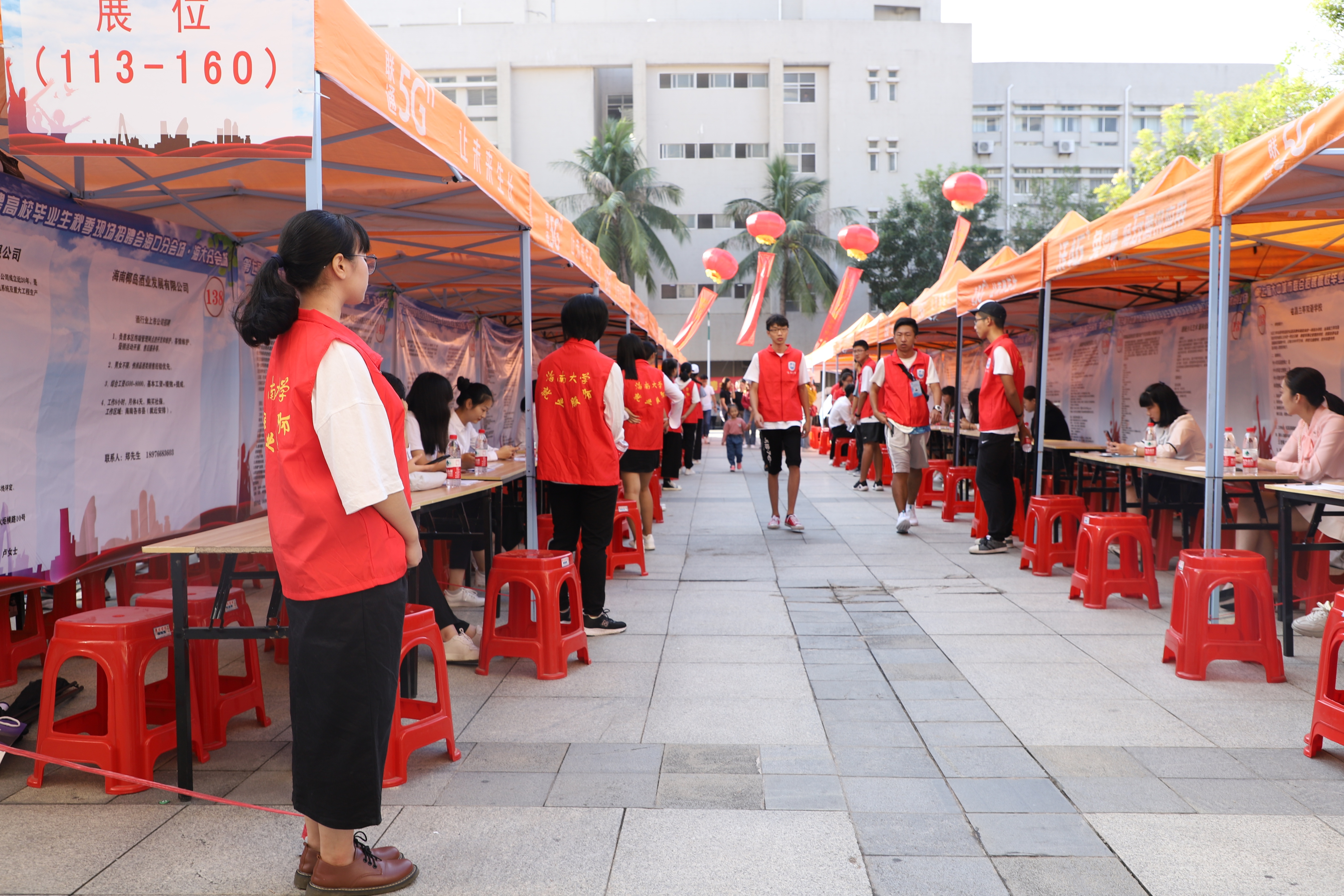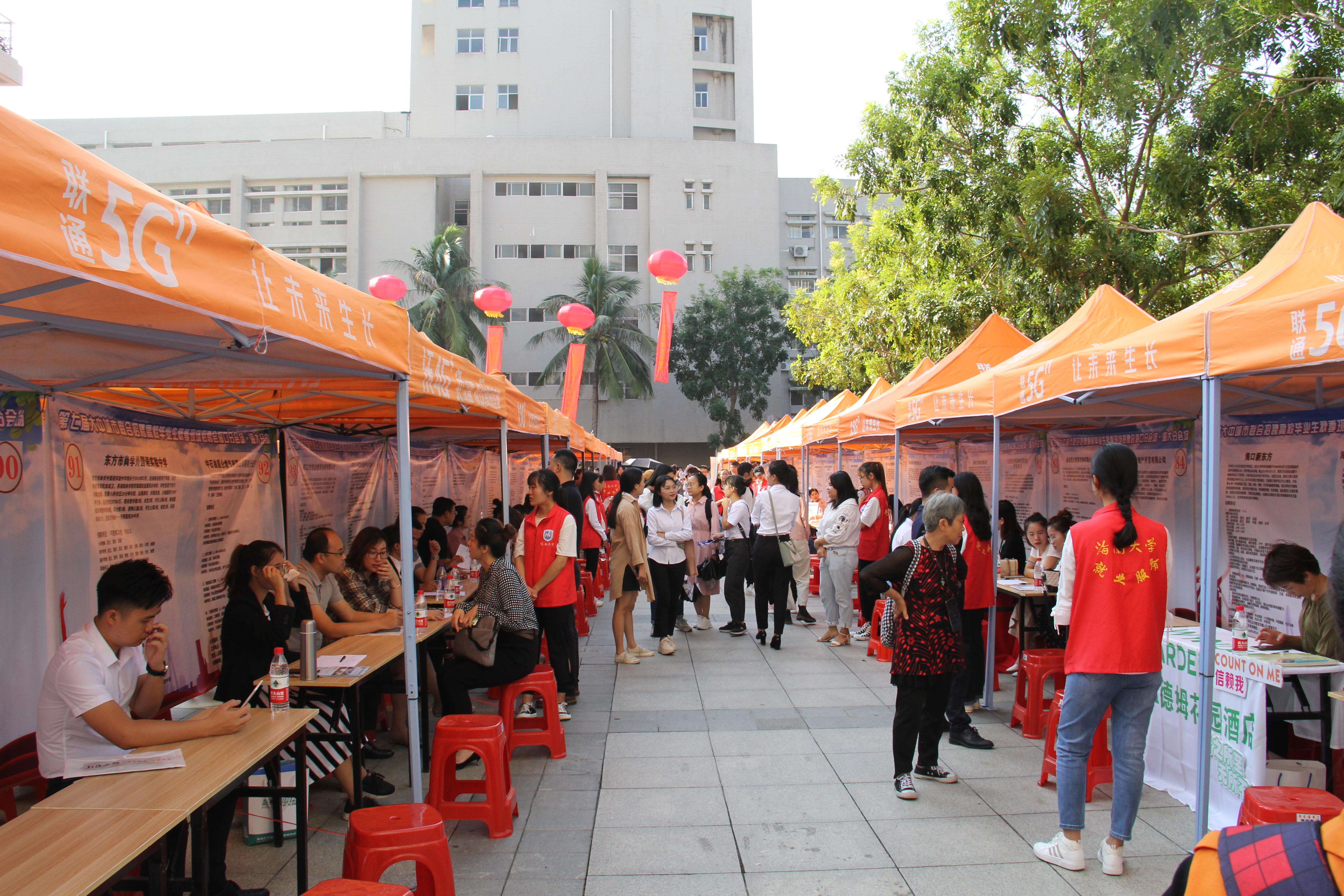 2019年11月16日上午,由海口市人才劳动力交流服务中心主办,海南天涯人力资源管理服务有限公司与海南大学招生与就业处联合承办的第七届大中城市联合招聘高校毕业生秋季专场活动海南大学分会场招聘会暨海南大学2020届文科类学院毕业生专场联合招聘会于海南大学社科群楼广场隆重举行。海南大学招生与就业处副处长王珍、外国语学院党委书记黄丽芹、管理学院主管学生工作副处级辅导员符涛及各文科学院就业工作辅导员出席活动并作现场指导。活动共吸引200余家企业到场招聘。