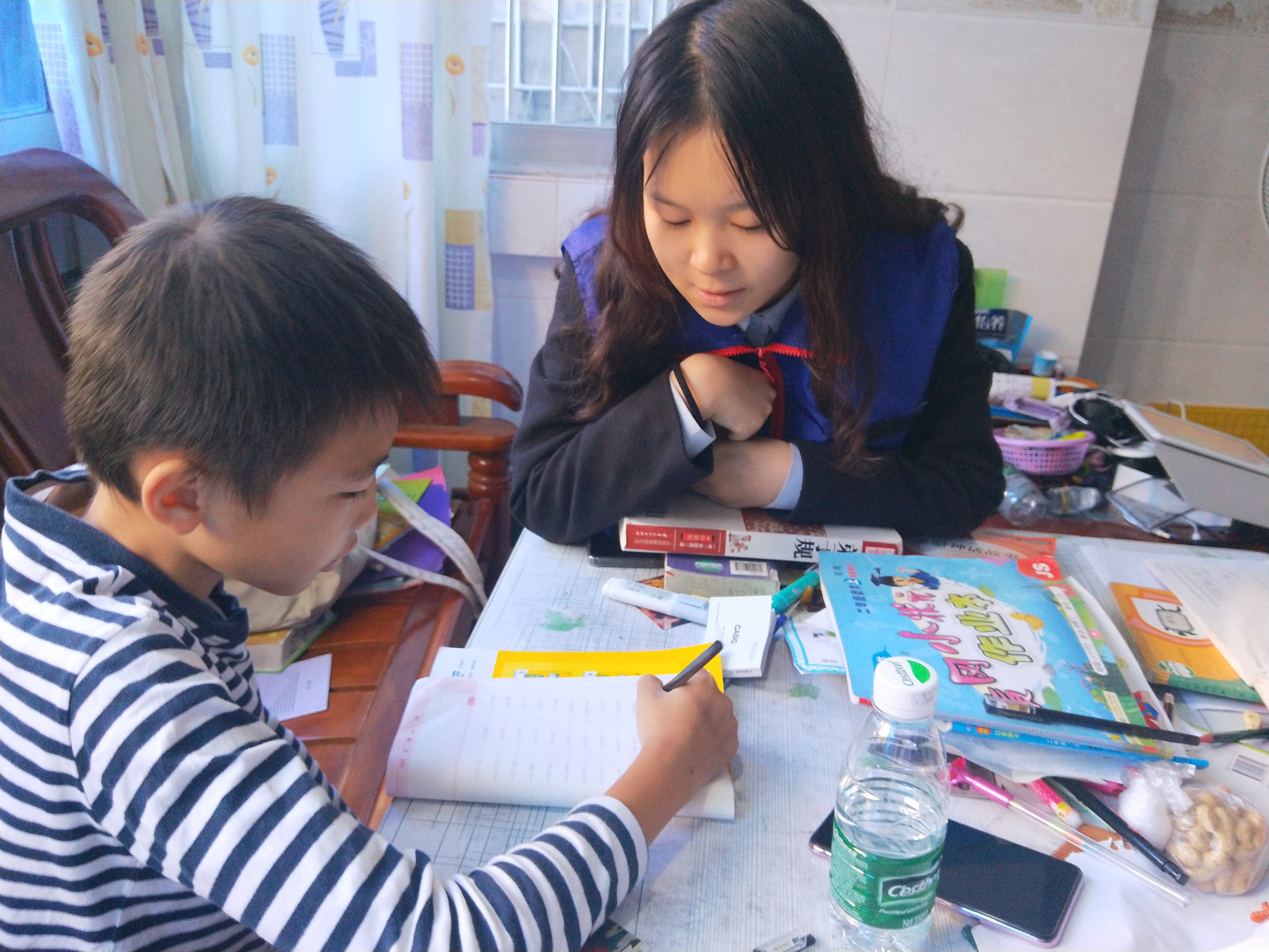 到达活动地点后,志愿者自行组队前往负责的家庭进行义务家教活动。临近期末,小朋友们还有许多学习上的困惑。志愿者细心教导,理清知识脉络,为他们的考试加油鼓气。对于小朋友们来说,考试中难度较大的就是数学学科。小朋友们早在志愿者来之前就把他们的错题整理清楚。志愿者也耐心讲解,一道道复杂的数学题在志愿者的讲解下,慢慢变得简单清晰,而小朋友们的脸上也终于露出恍然大悟的表情。志愿者举一反三,列举了几道相似的题型。在小朋友们轻松解出答案后,才开始进行下一项学科的辅导。窗外清风徐徐,窗内书声朗朗。背单词的声音和背诵古诗的声音回荡在万福社区。
