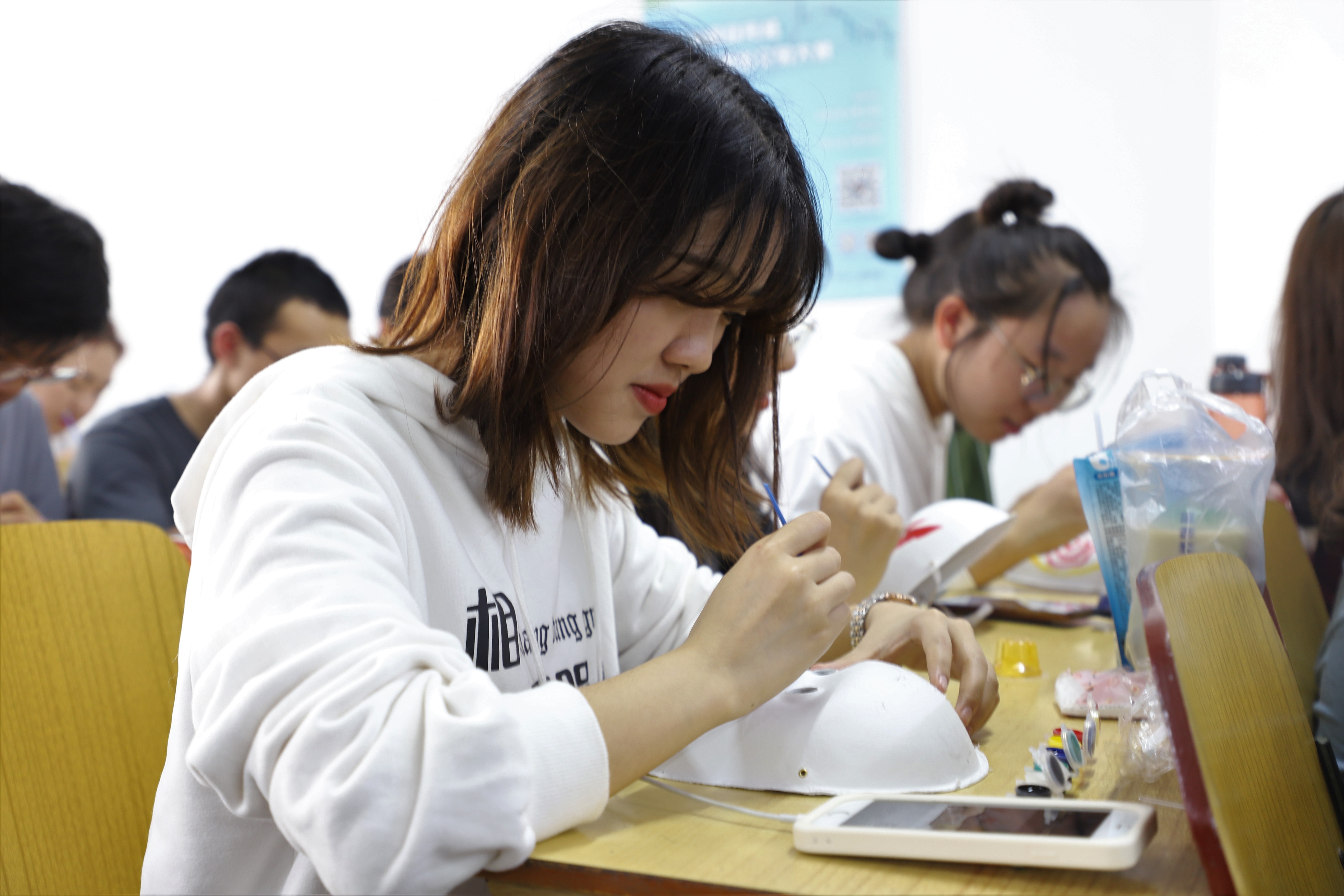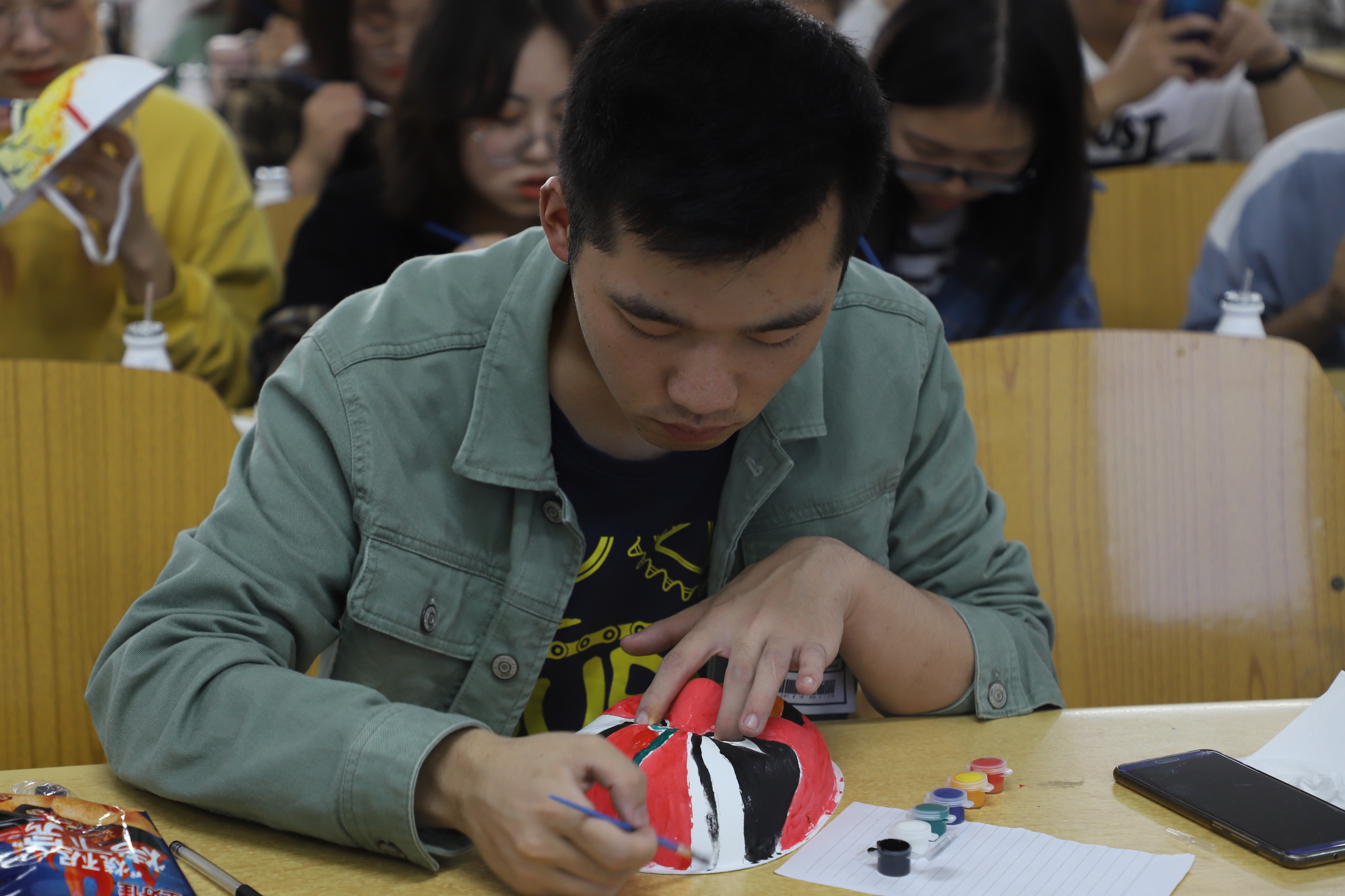 海南大学人文传播学院团学组织换届工作已于十一月中旬顺利结束,为增进团学组织成员的友谊,提升各部门间的凝聚力,2019年11月30日下午14:30,海南大学人文传播学院2019年“且将七彩绘年华”画面具团建活动在城西综合教学楼6C01室顺利进行。本次活动由团委办公室主办,人文传播学院团学组织全体成员约170人参与本次联谊会。