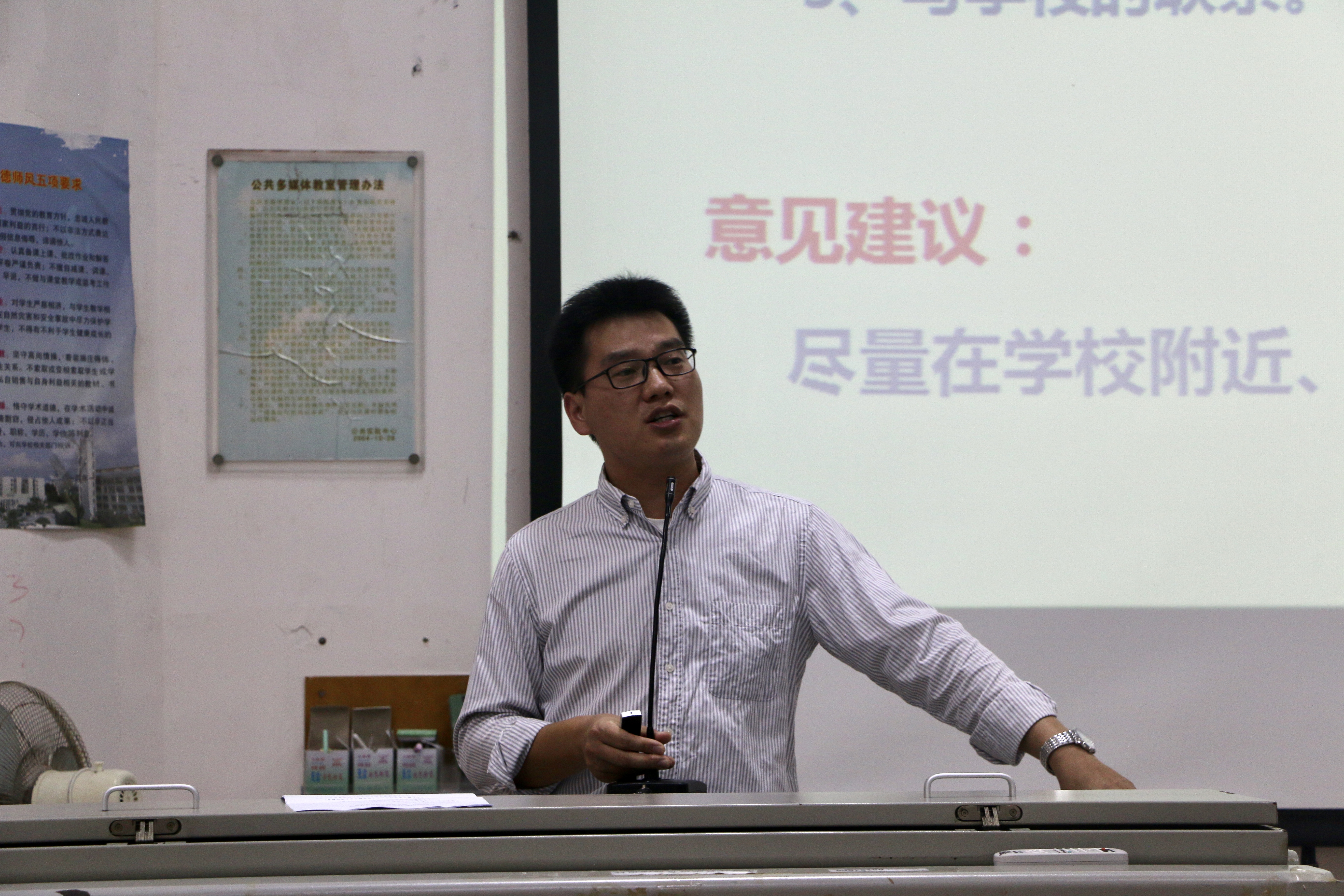 熊文军老师向全体毕业生传达了学院就业工作并作安全离校教育。熊文军老师首先为全体毕业生介绍了就业及实习期间会遇到的各种问题及解决方案;随后又详细介绍了就业协议书、就业合同及灵活就业证明等材料的领取程序与填写须知;最后熊老师提醒全体学生危险其实就在身边,安全无小事,做好安全防范工作,保障每个人的人身安全是学院学生工作的重中之重,同时也是每一个学生自己最该重视的问题。