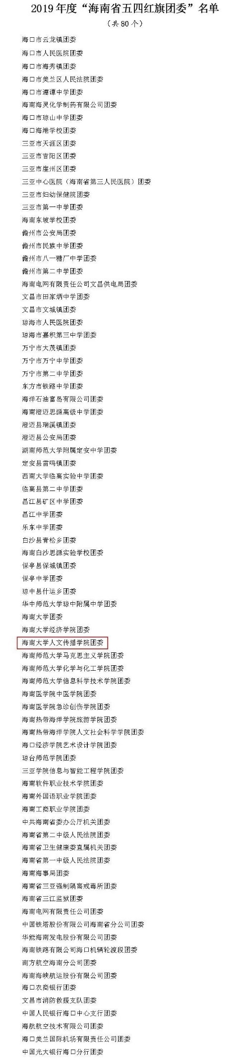 日前,在共青团海南省委下发的《共青团海南省委关于表彰2019年度“海南省优秀共青团员”、“海南省优秀共青团干部”、“海南省五四红旗团委”和“海南省五四红旗团支部(总支)”的决定》文件中,lol下注
