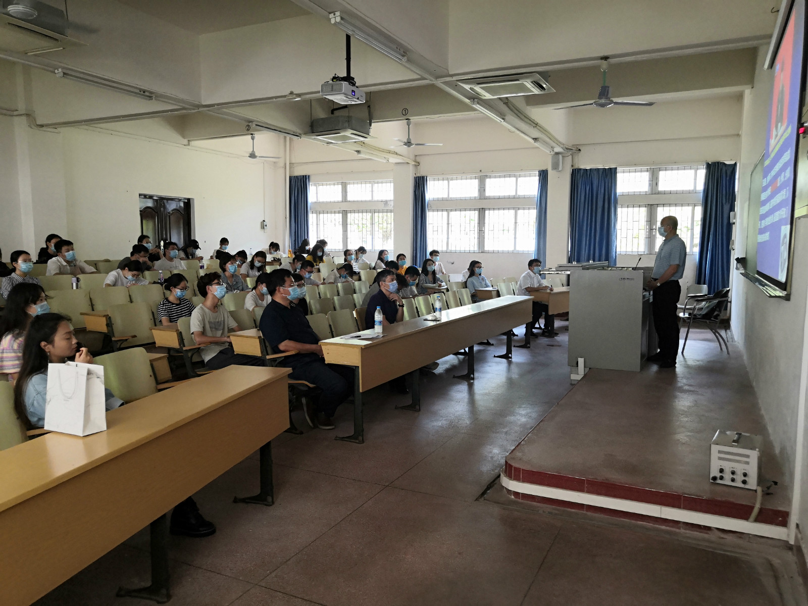 当炙热的阳光泼洒大地,海南大学迎来了新冠肺炎疫情防控常态化之下的特殊春季学期开学季。为落实落细疫情防控工作,保障返校同学生命健康和学习生活正常秩序,2020年5月26日下午3点半,人文传播学院在海甸校区2教111课室开展了“开学第一课”活动,校党委常委、副校长曹宪忠和院长刘复生、党委负责人邱华祥分别授课,16、17、18年级各班团支部书记(班长)、组织委员、生活委员和学生党支部支委参加。