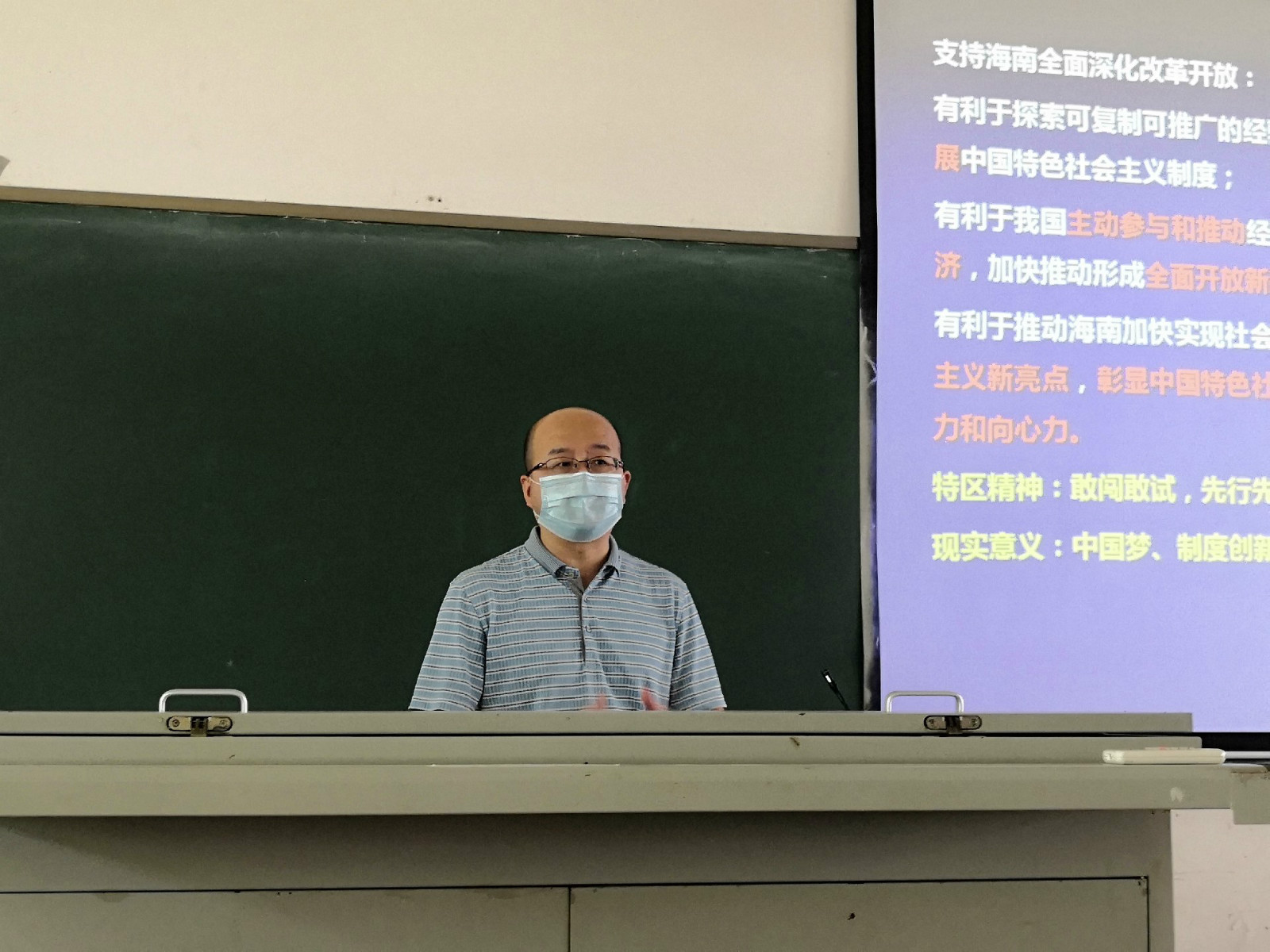 学院党委负责人邱华祥以“为海南自由贸易港建设奉献力量”为题开讲第一课。首先给同学们科普了新冠肺炎及其防疫基础知识,进而强调生命的珍贵,号召同学们要树立正确的生命观和人生面,人生就一切皆有可能,一定会美丽绚烂!尔后着重讲解了党中央支持海南全岛建设自由贸易试验区,支持海南逐步探索、稳步推进中国特色自由贸易港建设的重大决策部署,海南又站在了历史的潮头、改革开放的前沿,迎来了又一个前所未有的大好发展机遇,希望同学们好好学习、学有所成、心怀梦想,毕业后留在海南工作,为海南自由贸易港建设奉献力量。
