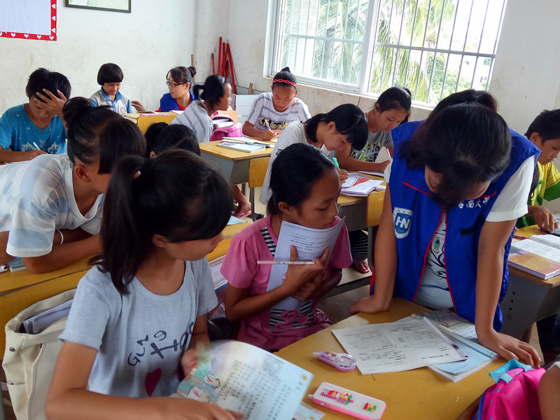志愿者为孩子们辅导功课