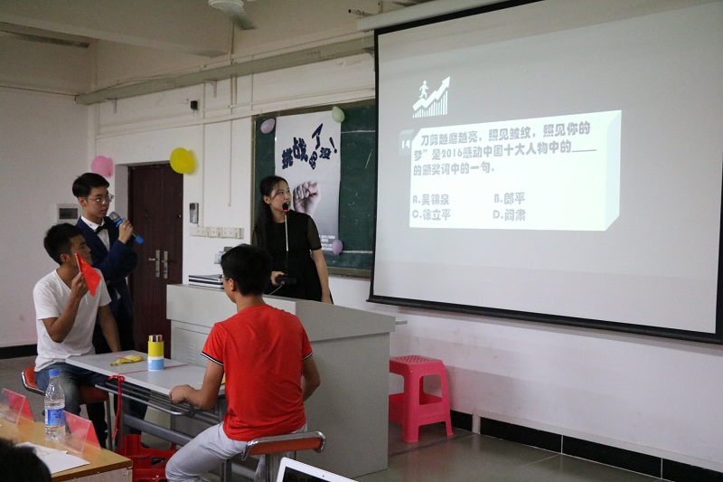 为了全面提高大学生综合素质,营造良好的校园文化,调动广大学生参与校园活动的积极性和主动性。2016年11月6日,由海南大学人文传播学院团委学生会主办,权益自律部承办的 “挑战go了没”知识竞赛复赛暨决赛在海南大学城西校区6c01教室拉开了帷幕。人文传播学院学工办王俊延老师、团委副书记刘昱竹同学作为嘉宾出席了本次活动。 下午3:00,主持人以人文韵味的开场白拉开了本次比赛的序幕。本次活动,共计“小试牛刀(初赛)”、“才高八斗(复赛)”和“一决高下(决赛)”三个环节。在“才高八斗(复赛)”环节中,通过通过抽签匹配的选手分别就“文学、文娱、体育、理化、社会、生活趣味、自然科技”七组分类题目展开激烈对决。在中场游戏加分环节中,选手们也展现出了他们的积极性和随机应变的能力。在“一决高下(决赛)”环节中,选手分别就“古、今、中、外、闻天下”五个关键词对应的题目展开竞答。 比赛过程中,选手们努力开动思维,展现自己的知识储量,许多趣味题也引得同学门爆发阵阵笑声,整个现场氛围轻松愉快。同时,选手们秉承着友谊第一,比赛第二的宗旨。在一番精彩角逐后,常璐同学夺得桂冠,郭瑞鹏和李佳岭分别取得亚军和季军,张馨之和王玥获得优秀奖。随着颁奖典礼的结束,本次活动也圆满落下了帷幕。 本次活动不仅学习贯彻了党的十八届四中全会精神,还弘扬了以“二十四字方针”为基本内容的社会主义核心价值观。在活动中培养同学之间的团结精神与竞争意识,营造文明、健康、活泼的校园氛围与学习环境。新闻部 田紫沁