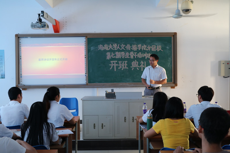 2016年11月15日,海南大学人文传播学院分团校第七期海甸校区学生骨干培训班开班典礼暨培训会第一讲于海甸校区四教308教室顺利举行。莅临本次培训会的嘉宾有人文传播学院学工办主任公衍峰老师、学工办王森森老师,团委学生副书记刘昱竹,学生会主席王媛媛,副主席李树瑶、范会昕,秘书长辛搏文,青协会长高少波。lol下注