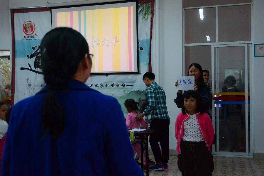 下午14:30分,由主持人致辞,对参与嘉宾表示欢迎,宣布结业活动正式开始。活动的第一环节,嘉宾致辞,嘉宾们对志愿者表示谢意,并讲述了对志愿服务活动的期许。第二环节为“笔间童趣·共度识光”书法小课堂活动,首先由书法协会成员作协会介绍及作品展示,然后展开猜字游戏,带领孩子们进行简单的书法练习,很快家长和志愿者被小朋友们的热情感染,情趣高涨,整个活动室氛围活跃。第三环节,亲子游戏“小手拉大手”,由主持人说明游戏规则,青协活动部干事在旁协助,孩子们和家长、志愿者共同参与,游戏中小朋友们手舞足蹈,笑声充满了整个万福社区活动室。第四环节,“我想对你说”。青协工作人员分发便利贴,组织孩子和志愿者在留言板上留言。高少波会长为志愿者和家长发放纪念品。下午17:00,由主持人作结束致辞,对活动人员表示感谢,宣布本次活动暨本学期“共度识光.雕琢梦想”义务家教活动圆满结束。