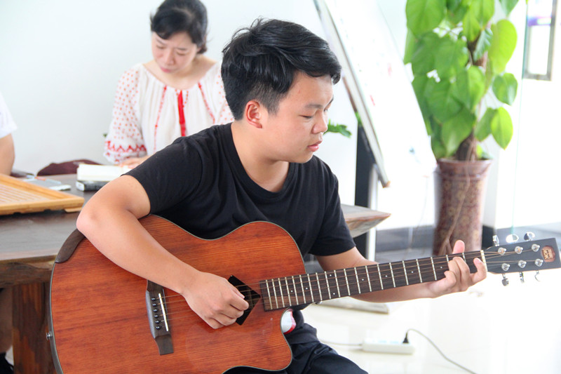 活动伊始,air音乐社张聪为大家带来了一首吉他弹唱《斑马,斑马》,民谣特有的慵懒的调子如午后的微风,缓解了夏日的燥热,舒缓了观众的情绪,为沙龙会的展开营造了良好的氛围。随后,汪荣老师回忆了自己与晏洁老师的读博生涯,与晏洁老师围绕着“读书”的主题,以“书店”“买书”“看书”为系列关键词,开始了随性却又循序渐进的漫谈,妙语连珠,为同学们带来了不少干货。晏洁老师认为当今的书店应该突破“只有书没有太多想象”的传统印象,去创造另一种可能性,即发展成集书、创意、艺术品等的休闲空间,汪荣老师也指出书店可以是建立作者与读者沟通的平台。在买书这方面,两位老师都是囤书的爱好者,汪荣老师开玩笑道,书多了,脑力活动就变成了体力活动,要费力气搬书。这时不时的幽默为现场观众带来了不少欢乐,带动了现场的气氛。晏洁老师则对专业书籍和休闲书籍的抉择提出了自己的看法,并且提醒同学们书的出版有一定的周期且时间较短,需要及时进行购买。而对于读书,晏洁老师坦言如今因为工作,“看书的速度赶不上买书的速度”,劝告同学们趁大学空闲时间多读书。汪荣老师认为一个人的人生经历是有限的,但书中的经验与体会是丰富的,多读书可以开阔一个人的眼界。两位老师的分享让在场的同学们大开眼界,受益无穷,也令同学们对读书产生了更大的兴趣。