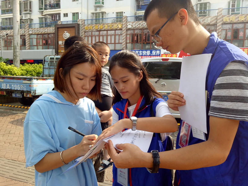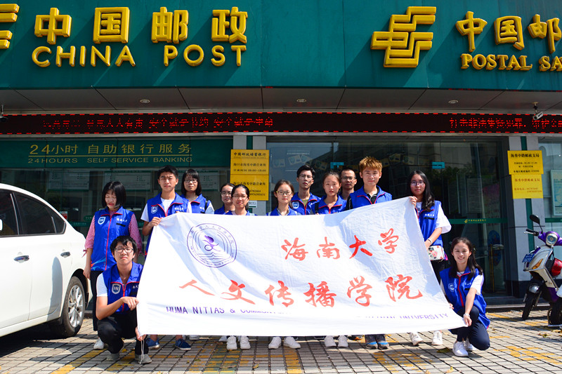 2017年10月29日上午,海南大学“善行100”公益活动在海秀中邮政支局附近的街道举行,来自海南大学人文传播学院各专业的19名志愿者参与其中。