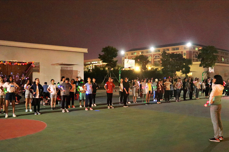 在经过一下午紧锣密鼓的准备后,参跑同学陆续入场签到,并领取荧光、发卡等万圣节饰品。19:30,活动准时开始,在轻松欢快的音乐中,主持人孙靖媛、楚杨炫上场介绍了到场嘉宾及接下来的活动安排。紧接着,文工团给在场观众带来激情四射的热舞《worse it》、《play the fire》,动感的舞步将全场气氛推向了一个小高潮,全程掌声四起,喝彩不断,大家已热血沸腾,跃跃欲试。随后,体育部副部长王翌晨上场带领大家排好队型,进行热身准备活动。