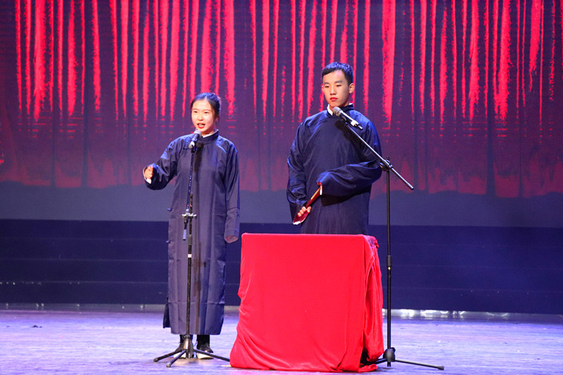 第二篇章“萌新竞技场”之前的抽奖环节掀起了晚会的又一个高潮,也使现场互动更加热烈。17级的女生独唱《大地飞歌》,她小小的身体 里蕴藏着大大的力量,惊艳了全场;17级中文二班带来的创意歌舞《大鱼》融合了中国传统元素,特别的歌舞中展现了独特的人文风采。17级中文四班带来的创意舞蹈串烧《全民健身操》在欢乐动感的音乐里将全场气氛推向了一个大高潮,让观众在台下也忍不住跃跃欲试;三位同学带来的歌伴舞剑《典狱司》又展现了另一种不同的中国古风貌。在本篇章末尾,刘复生院长为新生才艺大赛优秀节目颁奖。