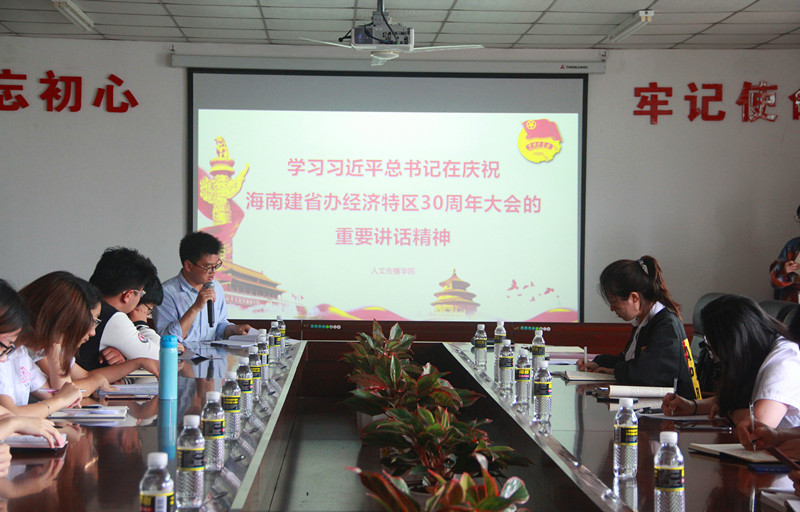 2018年4月17日下午15:00,人文传播学院团委组织团支部书记、团学组织骨干在海甸校区社科楼B719会议室学习习近平总书记在庆祝海南建省办经济特区30周年大会上的重要讲话精神,学院团委书记熊文军主持学习会。