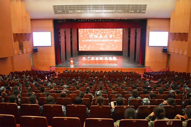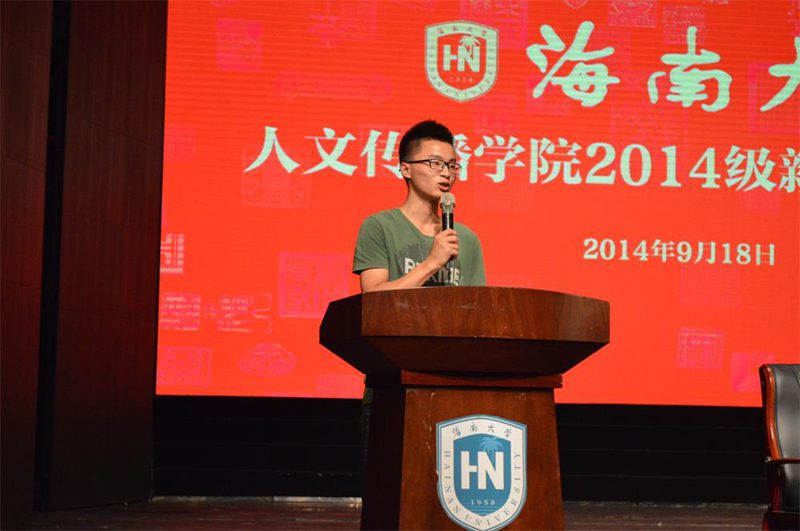 全体2014级的同学们明智地选择了国家“211工程”重点建设高校海南大学,幸运地选择了正处在快速发展中的人文传播学院。接着刘院长就人文传播学院各专业的教育教学、考研就业等方面做了详细的说明。刘院长最后语重心长地对大家说,一个人的成功在与对自己的定位,而不是对所在学校所在专业的定位。他希望全体2014级新生都能在开学之初树立伟大的目标,在四年的大学生活中不断突破和进步。随后,人文传播学院党委王兆庆书记也发表了演讲。王书记指出同学们应该对学院有信心,对自己有信心,相信在这四年里可以创造出许多的辉煌与成绩。他叮嘱同学们要改变学习方法、增强纪律意识、注意人身安全、注重心理健康发展,最后祝愿大家在未来的四年大学生活里学业有成。最后,石晓岩副院长就教学、学习等问题与2014级新生进行交流。石院长将大学与高中生活的不同总结为四点,即教育资源的不同、学习方法的不同、培养模式的不同、管理制度的不同。最后石院长衷心祝愿大家能做一个站在山顶的人,俯瞰苍穹。