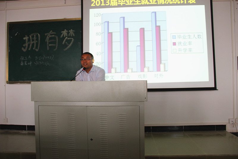 就业情况统计、单位性质、行业分析、地域分布等相关信息。公衍峰老师为人文传播学院学生细致分析了就业前景,并指出人文传播学院历届毕业生主要从事于各大文化产业,就业区域分布于海南、北上广、东部沿海等地区。公衍峰老师还特别强调越来越多毕业生选择留在海南,海南的就业优势不容小觑,而2014年与2013年相比西部学生产生了西部返乡高潮,就业选择将更趋多元化。关于职业生涯规划,公衍峰老师提出了生涯规划的四个阶段:行动反馈、自我探索、职业探索、职业选择。现代大学生应更注重于自我探索,认识自我,把握自我。面对多数大学生出现的“学业不适”问题,公衍峰老师为同学们归纳了五大诱因,并为各阶段大学生学习生活提出不同建议。公衍峰老师指出,大一新生应主动学习,团结同学,而老生更应管理时间,修订目标,充分施展自身才能。讲座结束,同学们报以热烈的掌声。 随后,就业服务部张玉杰部长为同学们作了大学生可考证件的分析,为避免大一新生盲目考证提出合理建议。张玉杰部长为同学们详细讲述了通用类证书,能力型证书,职业资格类证书共计18种证件利弊分析,同学们受益良多。 大学学习是人生中的重要一站,在大学生涯中,制定完善的职业生涯规划,对大学的学习具有重要的定位和导向意义。活动结束,就业服务部张玉杰和谢晨坤部长鼓励2014级同学努力学习,筑就丰富多彩的大学生活!