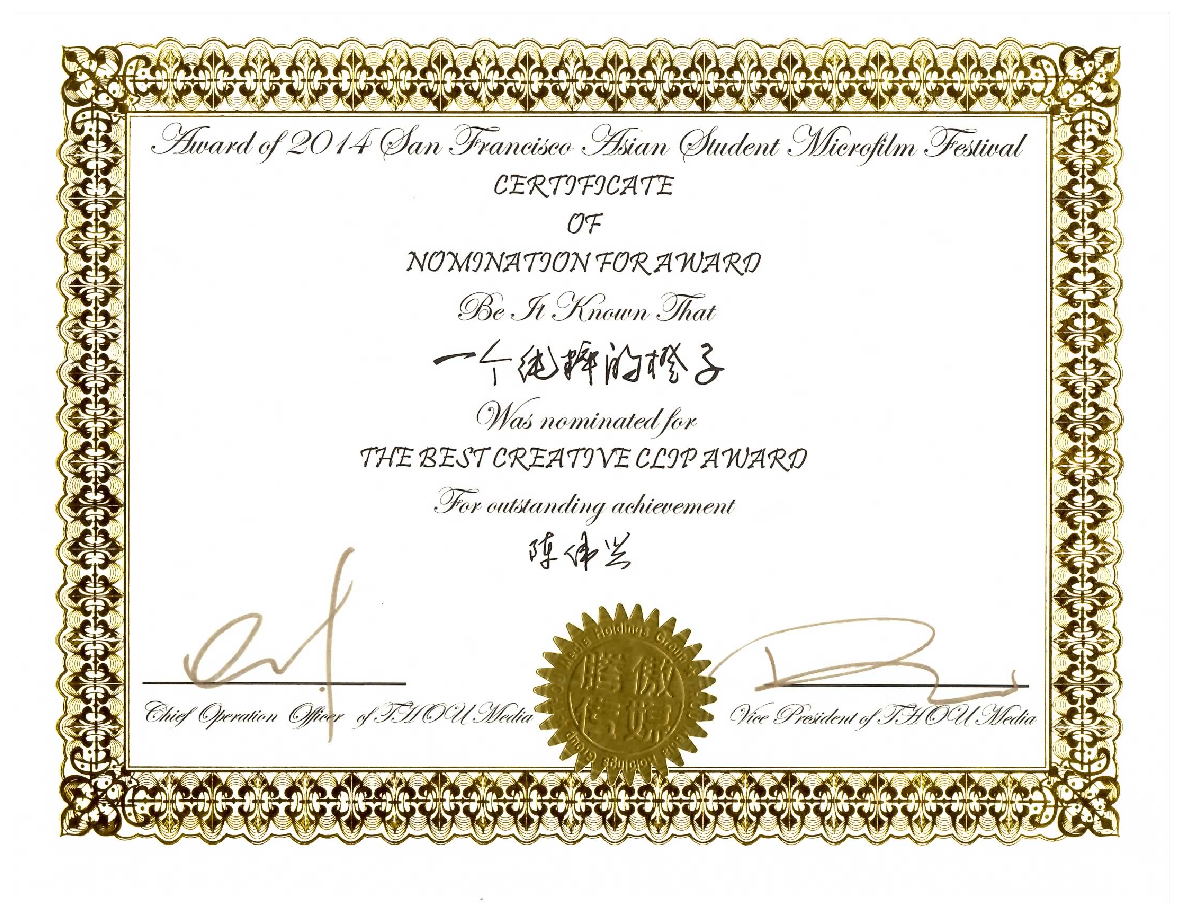 新闻与传播学系陈伟兴同学的微电影作品《一个纯粹的橙子》在“(美国)旧金山第二届亚洲学生微电影节”中入围最佳创意短片,最终获得“最佳创意短片提名奖”。《一个纯粹的橙子》的创意广告短片,时长30秒,该片以独特的视角,整个片子只出现一个橙子,然后以一个橙子的变化来作比喻现在存在部分媒体的乱状。突出对现代媒体的内涵的反思。 陈伟兴同学已有多次微电影大赛经验,并获得多项殊荣。得到此获奖消息时,陈伟兴同学正在暑假骑行西藏的路上,在路上骑行的他还不忘用镜头拍摄微电影。陈伟兴同学在这次国际比赛中能够脱颖而出,折射出海南大学着力提升学生核心竞争力、鼓励创新的育人导向,也体现了海南大学新闻与传播学系“学以致用、以用促学”的教学理念。在得知陈伟兴同学获奖后,新闻与传播学系系主任何晶娇老师和该系毕研韬教授向陈伟兴同学表示祝贺并鼓励其再接再厉。 旧金山亚洲学生微电影节,是由中国教育国际交流协会文化教育创意研发中心顾问指导。面向全球征集作品,是一个国际性的评选,在组委会征集的数百件作品中,不仅有来自中国传媒大学,中央美术学院等中国高校的作品,更有加纽约电影学院,南加州大学等美国高校和学生组织选送的作品。此次活动旨在创造国际性平台,推广学生文化交流,发掘年轻人创意及才华。是一个集展映、交流、评比於一题的微电影主题活动。包括微电影大赛、微动画大赛、微剧本大赛等竞赛单元。有50名优秀奖获奖名额、18项微电影节奖项。颁奖典礼在美国旧金山举行。 比赛链接://thoumedia.com/microfilm/2nd/%E3%80%8A%E4%B8%80%E5%80%8B%E7%B4%94%E7%B2%B9%E7%9A%84%E6%A9%99%E5%AD%90%E3%80%8B/