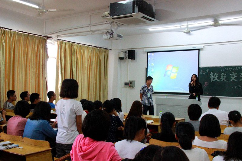 11月15日下午3点,人文传播学院广告系和中文系校友交流会分别在海南大学城西校区8A01教室和8A02教室召开。在交流会中,杰出校友们在表达了自己对母校的热爱和感谢后,就如何把握当下大学生活和规划未来与2014级同学们进行了热烈的探讨,学工办公衍峰老师主持了活动。