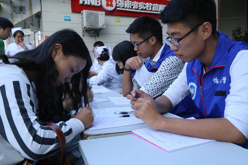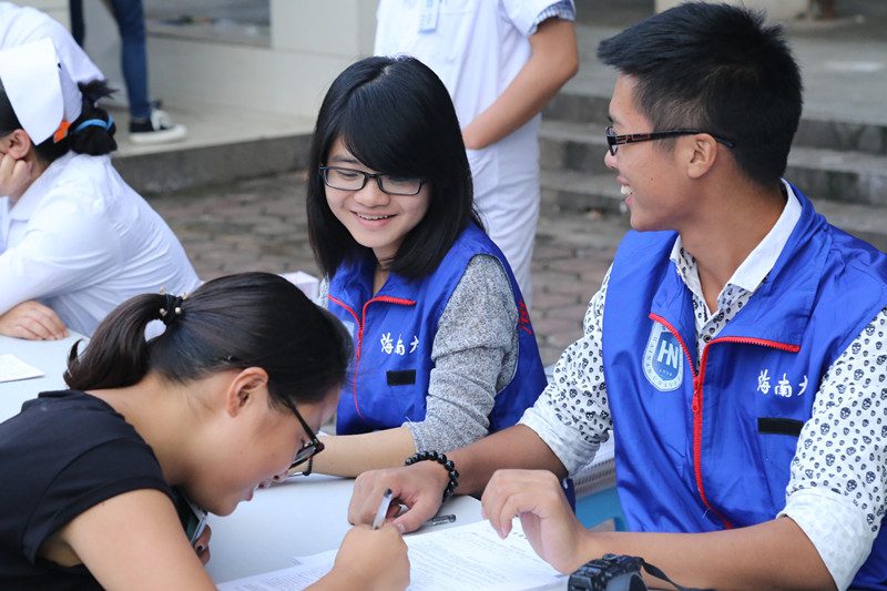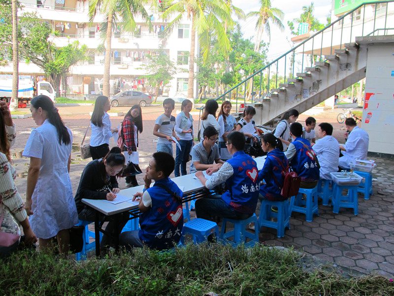 2014年11月15日下午3:00,人文传播学院无偿献血活动在海南大学第二食堂门口开展。当天下午青年志愿者协会的志愿者们在会长高强的带领下早早来到了献血场地进行场地布置并与到场医护人员进行了沟通和安排,无偿献血活动有条不紊的开展。 下午3:00后陆续有同学到达献血点,不乏很多女同学来贡献力量。在献血过程中,同学们首先在志愿者处进行登记,随后到医护人员处量血压测血型,最后到献血车中进行献血。整个过程中医护服务人员和志愿者们亲切热情的服务态度使同学们感受到了温暖。献血车外,从宿舍、操场走向献血点的同学们络绎不绝,献血车内整齐的布置,清洁的环境使同学们感受到了卫生、专业。医护服务人员在献血过程中为同学们提供了饮料,处处体现了“人性化”的关怀。在献血后,同学们拿到了笔记本、信封、邮票、等纪念品并领取了献血证。 本次无偿献血活动在志愿者们的积极配合、医护人员的敬业工作、同学们的积极参与下圆满结束。在本次活动中同学们秉承着“人人为我,我为人人”意识,体现了志愿者奉献爱心、分担责任的当代大学生精神。