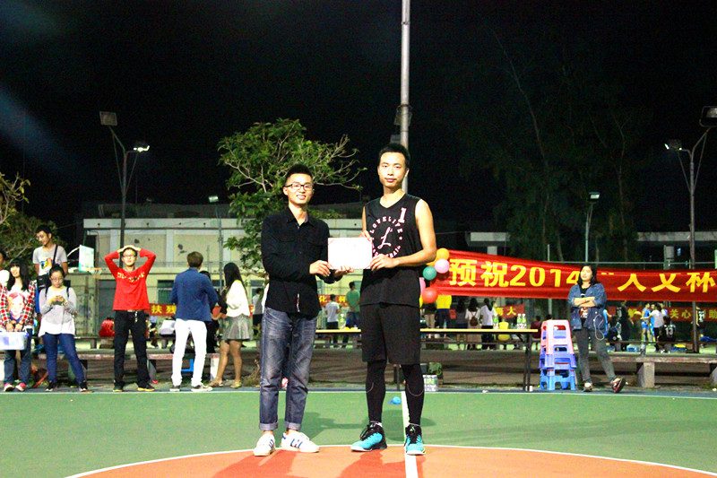 2014年11月23日19:30,人文传播学院2014年“迎新杯”篮球赛决赛在海南大学海甸校区灯光篮球场1号场拉开帷幕。出席本次比赛的嘉宾有人文传播学院团委副书记崔玉,人文传播学院学生会主席李润东,副主席罗艺乐、青奕彤,以及各兄弟学院学生会主席和体育部部长。 人文传播学院2014年“迎新杯”历时一个月,12支篮球队历经磨难,最终12中文和12广告两支队伍突出重围进入决赛。19:30,伴随着裁判的一声哨响,决赛正式开始。比赛共有六节,第一二节和第五六节为男篮对抗赛,第三四节为女篮对抗赛,六节分数累积计分。在比赛的第一节,12中文发挥正常,而12广告则手感不佳,第一节结束后12中文以12:6领先于12广告。第一节结束暂停期间12广告调整状态和战术,在第二节打出了10:1的小高潮,将比分反超,使12中文13:16落后于12广告。比赛进行到了女篮对抗赛,虽是女篮,但是风采丝毫不输给男篮。在第三节中12中文女篮打出了一波14:0,使比分改写为27:16。在第四节中,12中文女篮乘胜追击打出了16:2的小高潮,将分差进一步拉大,在第四节结束时,12中文以43:18领先于12广告。第五节比赛开始了,12广告想要扳回比分,但12中文加强了防守,没给12广告扳回比分的机会,双方第五节结束时12中文以50:26领先。到了最后的第六节,双方都加强了进攻,12广告努力进攻想要逆转比分,但12中文以攻对攻不落下风,最终12中文以61:39获得了比赛的胜利,捧回了冠军奖杯。12广告和13广告分别获得了亚军和季军。获得本场比赛最有价值球员的男女队员分别是12中文罗日通和12中文陈洁。 赛场拼搏,青春飞扬!篮球让青春激情昂扬,友谊让你我地久天长。人文传播学院2014年“迎新杯”篮球赛就此落下帷幕,但是人文学子在赛场上努力拼搏与不屈坚持的精神在学习和生活中都会对我们产生积极的影响,通过此次比赛也加深了各专业各年级间的认识与交流,加强了人文传播学院的凝聚力和竞争力。希望人文学子能够发扬赛场精神,不断进步不断提高自己,开创属于自己的辉煌!