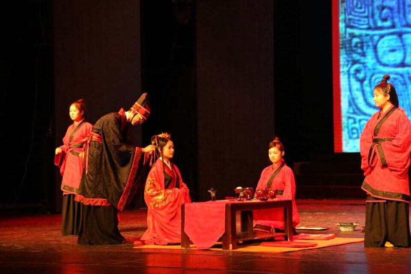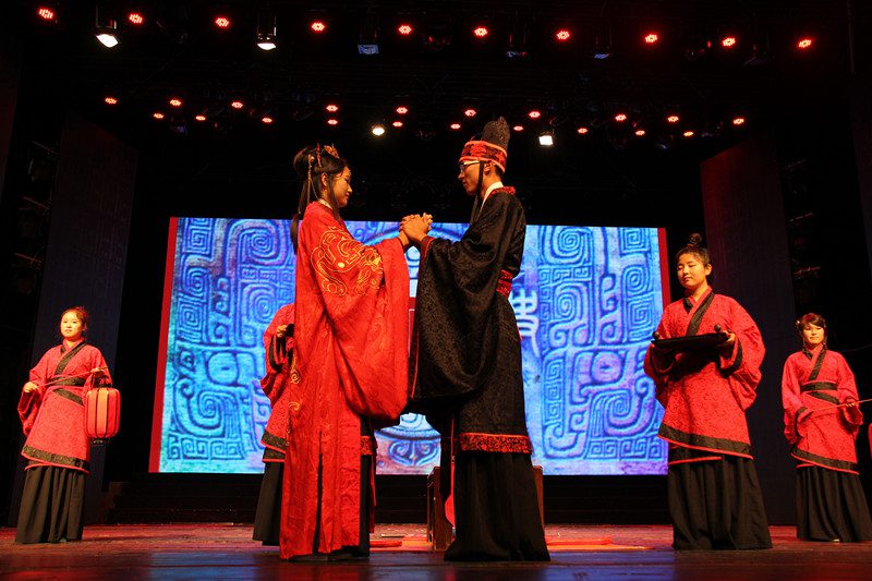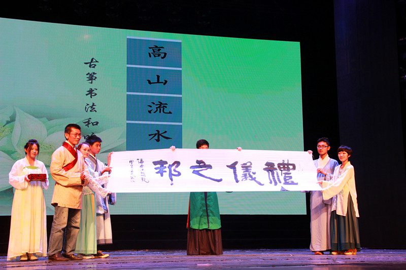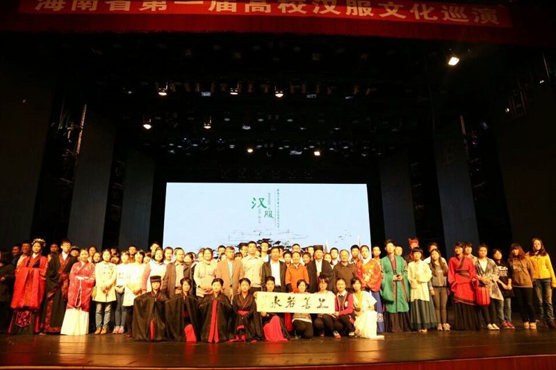12月4日晚上7点30分,由海南大学人文传播学院和海南大学学生社团联合会联合指导,海南大学国学社承办,海南各高校汉服社协办的“海南高校第一届汉服巡演.海大站”专场晚会在海南大学思源学堂盛装开演。出席本次活动的嘉宾有中共海南省委教育工委办公室主任罗杰、海南大学团委副书记黄小鸥、人文传播学院党委副书记孙晓媛、人文传播学院陈传汉老师、北师大校友会梁慕卿和来自泰国的访琼团。活动旨在通过汉服巡演弘扬中华传统文化和礼仪。 在庄严震撼的开场舞《礼仪之帮》节目后,由本次活动的发起者李榮老师发表讲话,他提到了汉服复兴运动近年来的发展,同时也指出这次活动目的是通过华美的服饰发扬华夏文化礼仪,实现华夏民族复兴和中国梦。接着由“衣云裳”汉服社推出了汉服秀《有衣,云裳》,通过走秀的形式将曲裾,直裾,襦裙,短打,直裰等汉服不同形制的实物向观众一一展现。紧接着来自海南各高校的汉服社团也表演了各自的精品节目,如舞蹈《惊鸿舞》、《风雅》、《长恨歌》和舞台剧《孔雀东南飞》等。演员们精彩的表演将巡演的气氛推向一轮又一轮的高潮。在书法与古筝节目《高山流水》后,主办方将写有“礼仪之邦”四字的墨宝赠予了泰国访琼团。在互动环节中,通过汉服知识问答抽取了四名幸运观众进行汉服试穿。在被问到穿着汉服的感受时,体验者说,他感受到了庄重的仪式感和深厚的文化积淀。晚会最后展示的是周制婚礼,婚礼流程包括亲迎、交拜礼、对席礼、沃盥礼、共牢合卺、合卺礼、解缨结发和执手礼。“桃之夭夭,灼灼其华。之子于归,宜其室家。”这场周制婚礼给观众们带来了别开生面的感受,使观众们被传统礼仪文化深深打动。第一届海南高校汉服巡演?海大站至此圆满落幕。 着我华服,扬我汉礼。汉服复兴运动在全国兴起已经十年左右,海南高校汉服巡演顺应着国内汉服运动的发展,拉近了高校大学生和传统文化的距离,使高校学生对传统服饰礼仪有了较为详细深入的了解,为中华优秀传统文化的复兴贡献出了自己的力量。