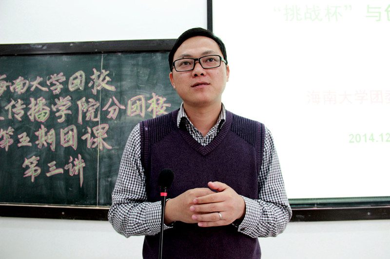2014年12月9日下午4:30,人文传播学院第五期团校学生骨干培训第三讲在海南大学城西校区3A05教室如期举行。本次讲座邀请到海南大学团委、海南大学创新院执行院长林琛老师担任主讲嘉宾,学院团委熊文军老师主持本场讲座。林琛老师以“挑战杯与创新思维”为主题与团课学员展开互动交流。 在讲座中,林琛老师向学员们介绍“挑战杯”竞赛并深情回忆了海大师生在往届“挑战杯”竞赛中所取得的成绩。“挑战杯”竞赛是由共青团中央、中国科协、教育部和全国学联、地方省级人民政府共同主办的全国性的大学生课外学术科技创业类竞赛,自海南大学于2003年参加第八届全国“挑战杯”以来,海大师生们在“挑战杯”比赛中屡获佳绩。林琛老师的详细讲解,让学员认识了解并感受到了“挑战杯”这一大学生奥林匹克盛会的魅力。接下来,林琛老师紧紧围绕“创新思维”这个主题来展开讲解。面对同学们关于如何创新的困惑,林琛老师提出了“坚持三个结合”、“拥有四心”、“认识五力”的建议。他还用贝尔纳的名言,“构成我们认知最大障碍的,不是未知的,而是已知的事情”勉励大家敢于创新,勇于创新。讲座最后,熊文军老师对本次讲课内容进行总结,鼓励大家不断积淀,发扬探索创新精神,在未来创新创业的路上踏出坚实的步伐。 通过本次讲座,同学们不但增进了对“创新杯”竞赛的了解,而且认识到了创新思维的重要性。这有利于开拓同学们的思维,促进他们的全面发展。希望广大学员能通过此次讲座的学习,发掘潜能、沉淀自我、找准方向,不断提升创新创业能力。