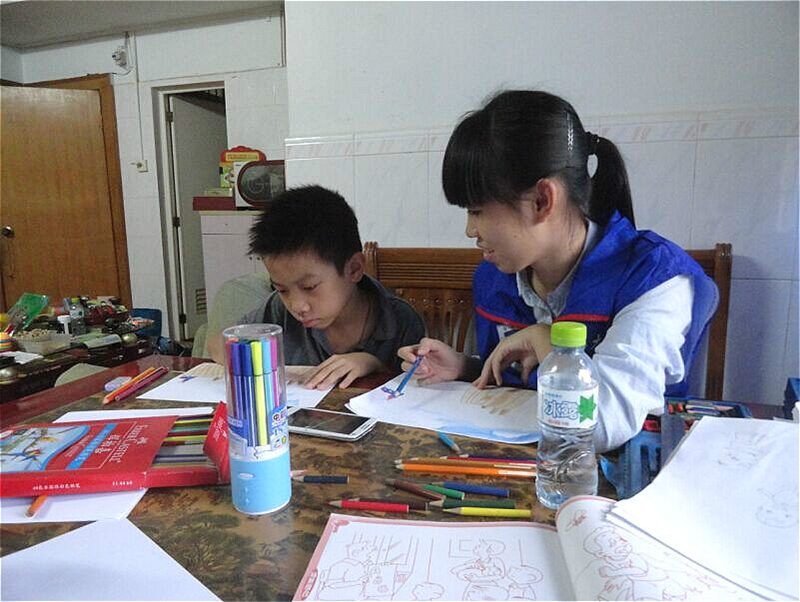志愿者陪孩子们做作业