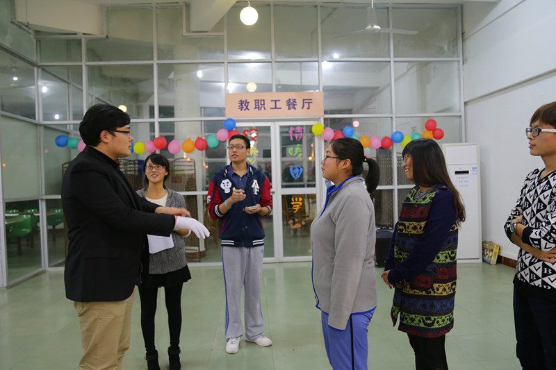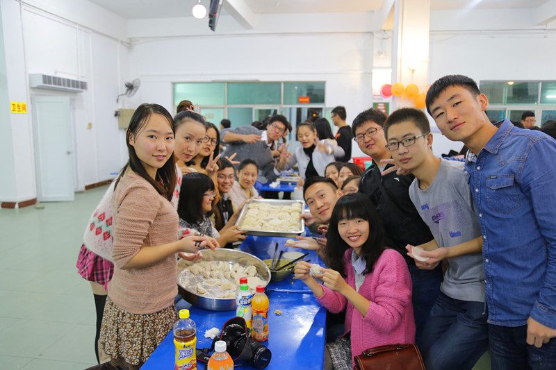 2014年12月21日晚7:30,人文传播学院团委学生会全体成员在城西校区食堂二楼举行了冬至饺子节活动。活动旨在让团学成员彼此加深了解,加深感情,在寒冷的冬至为团学成员送上温暖。学工办的熊文军老师、王森森老师指导并参加了此次活动,老师与团学成员齐聚一堂,共迎冬至。 古来冬至寒夜长,在这样的冷日子里,吃一碗热腾腾的水饺真是让人心生暖意的事情,为了让活动顺利进行,团委办公室的部长带领着干事早早的就到了食堂布置场地,他们购买食材、剁陷、擀皮,所有工作一应齐备。晚上七点半,团学全体成员准备就绪,各部门通过抽签选出了新的包饺子小组一同参加活动。场间的活动共有包饺子大赛、方向大乱站、萝卜蹲、爱你在口口难开等游戏互动。包饺子大赛中,限时5分钟之内,包出最多、最完美的饺子的队伍获胜,为了保证公平,在记分员记下各队饺子数后,各队再继续包出够队员吃饱数量的饺子;方向大乱站活动中,游戏分为指令者和参与者,指令者发出指令,参与者以最快速度看向其他方向,则成功,反之,则失败;在之后的萝卜蹲活动和爱你在口、口难开活动中,大家积极热情的参与到活动中,现场不时传出阵阵欢笑声。活动中,同学们一边玩游戏,一边等待饺子开锅。欢乐中时间过的飞快,一眨眼的功夫饺子已经摆到了饭桌上,同学们迫不及待的吃了起来,在一片欢声笑语中,感受浓浓的节日氛围。 饺香冬至日,情暖团学心。此次饺子节活动不仅让团学成员感受到了团学大家庭的温暖,也促进了团学全体成员的情感交流,更让团学成员感受到了我国传统民俗节日冬至的浓浓节日气氛。本次活动由学院团委办公室组织策划承办。 人文传播学院 新闻部 杜志东