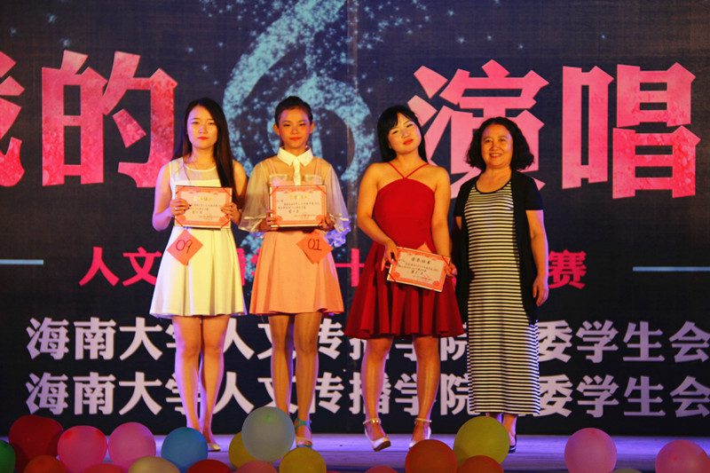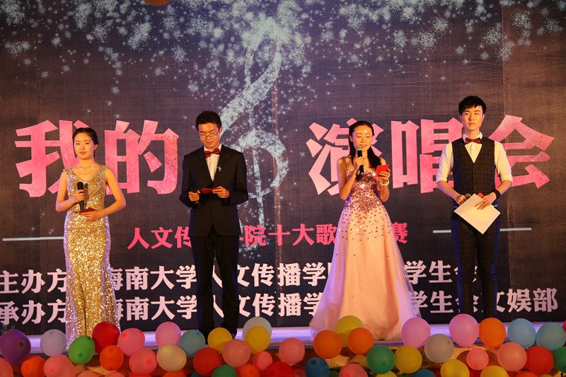 2015年4月18日19:30,人文传播学院2015年度十大歌手决赛“我的演唱会”在海南大学城西校区田径运动场拉开帷幕。莅临本次十大歌手决赛的嘉宾有人文传播学院党委孙晓媛副书记,城西校区团工委杨智伟老师,人文传播学院学工办公衍峰老师,熊文军老师、王森森老师、海南大学学生会副主席张晨。担任本次比赛的评委分别是“校园好声音”全国十六强选手王瑚、2014年校十大第五名刘茵、艺术学院音表专业蒲睿祺。整场比赛,选手们将自身的演唱水平发挥的淋漓尽致,给现场的嘉宾和观众们带来了一场听觉盛宴。 19:30十大歌手决赛正式开始,首先由Zero舞队带来街舞《从零开始》,开场的劲舞引爆了现场观众的激情。紧接着就是本场比赛的第一轮“喉清韵雅,鼎力相助”,本轮比赛分为六组,12位选手两两一组,每组有各自的主题,选手根据主题选择自己将要演唱的曲目。在第一轮中选手们都全力以赴争取晋级资格,陈小雅以《Halo》表现主题“光影碎落”引爆全场,陈希林用《悬崖》抒发“四面楚歌”的主题引发共鸣,F组合通过《千年之恋》将“彼岸轮回”的主题进行了表达。本轮比赛中选手的演唱不断引发现场观众的掌声和欢呼,每逢歌曲高潮部分观众的激情就会被引燃,现场氛围热烈。在12位选手首轮演唱结束之后是由D—Tac艺术团带来舞蹈串场《Turn Down For What》。在紧张的统计评分后,陈小雅、罗艺乐、王川元、黄慈妙、陈新心顺利晋级第二轮,五位选手纷纷选择了自己最擅长的曲目进行演唱,没有主题限制的选择曲目使选手的演唱水平得到了淋漓尽致的发挥,不管是奔放的欧美音乐还是抒情的中文歌,都给观众嘉宾和评委带入了一场视听震撼。经过激烈比拼,最终陈小雅、罗艺乐、王川元分别获得了第一名、第二名、第三名,倪晗获得了最佳台风奖。在现场观众意犹未尽的掌声中,本次十大歌手决赛完美落幕。 喉清韵雅,余音绕梁。本次十大歌手比赛不仅为人文学子在学习之余带来了音乐的享受,而且给广大人文学子提供了一个展现自己演唱才能的平台,希望晋级的参赛选手能够在本届校十大上同样由不俗的表现。 新闻部 杨振