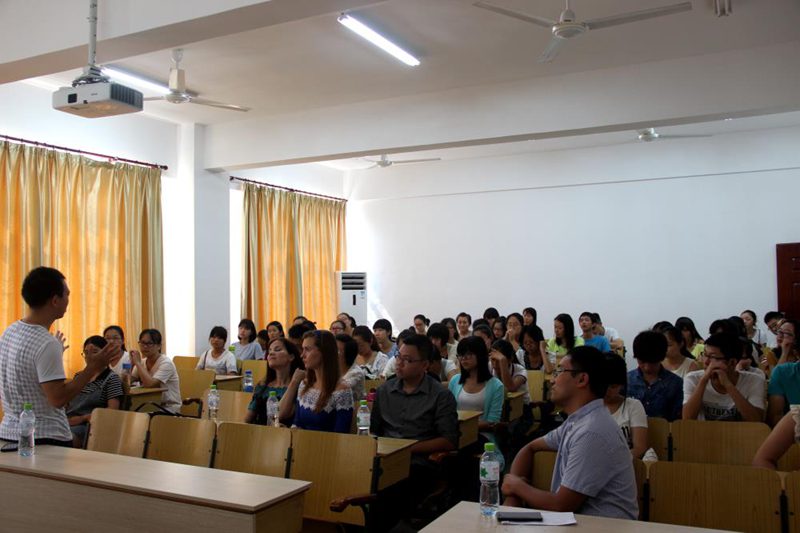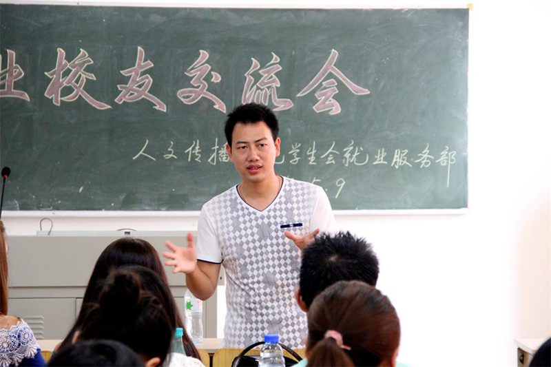 戏剧影视文学专业交流会开始之时,王森森老师首先对参加交流会的几位校友进行了介绍,并通过播放余庆的作品《抱罪长眠》的节选片段让同学们对几位学长的能力和发展状况有了更加直观的认识。在王森森老师开场之后首先是余庆和同学们进行交流,他先讲述了自己在海南大学生活学习的经历,将自己大学四年的经验传授给同学们,然后他讲述了自己大学毕业之后的奋斗和努力,告诫同学们大学期间要认真学习,大学学习的知识对于人生的帮助是巨大的,同时也要努力发展自己的兴趣爱好,让自己有所专长。在他之后进行交流的是戈多兄弟创始人之一的赵朝举,他在讲台上与同学们交流的同时还让大家通过微信面对面建群的功能提问并进行交流。他主要讲述了自己大学毕业之后艰辛创业,坚持自己梦想、坚持做自己的电影工作室的经历。最后他对同学们到他们的公司进行学习表示十分支持和欢迎。 汉语国际教育专业校友交流会邀请到2011届毕业生韩剑丰、2013届毕业生明炜两位学长以及三位留学生参加。公衍峰老师首先介绍了到场嘉宾,以及此次校友交流会的目的。接着由明炜学长与同学们分享经验,交流中他谈到自己大学时期的准备与努力和在泰国支教的经历,并鼓励同学们不要因为挫折灰心丧气。得到了同学们很大的共鸣。接着由三位留学生和汉语国际教育专业的同学们分享学习心得。随后,本专业首届毕业生韩剑丰学长与同学们进行了亲切交流,分享了自己职业规划的经历和经验,为同学们提供了大量专业学习的资源。校友还给同学们留下了自己的联系方式,表示随时愿意为同学们提供相关服务,希望能够通过自己的努力帮助大家更好地走好人生之路。 交流会在同学们的掌声中圆满结束,结束之后同学们仍然意犹未尽,去找几位学长对自己的疑惑进行解答。校友交流会的圆满举办不仅为同学们提供了一个交流的良好机会,也为大家传授了大学学习和生活宝贵的经验,同时密切了专业内部不同年级直接同学的联系,为同学们未来的发展提供了宝贵资源。衷心希望同学们能够通过这次的机会来提高自己,能够找到适合自己的发展方向,树立自己对未来的目标并为之努力。