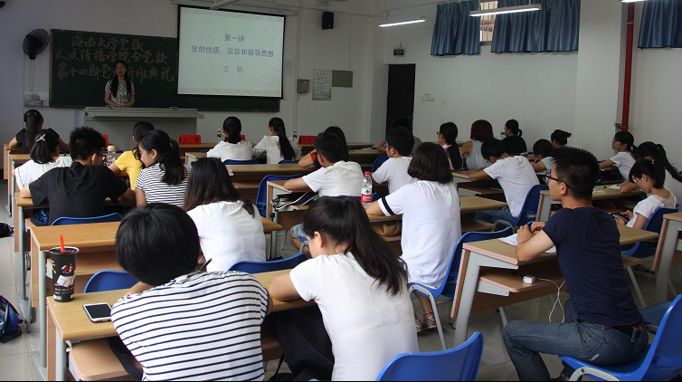 2015年5月12日下午3时,人文传播学院分党校第十四期党课(发展对象)开班典礼暨第一讲在海南大学第五教学楼108室举行。人文传播学院党委王兆庆书记、海南大学学生工作处助学贷款与资助科副主任王静老师担任嘉宾出席了开班典礼。院学工办王俊延老师担任主持,来自学院的30发展对象参加了开班典礼。 典礼仪式开始前,王俊延老师首先介绍了到场嘉宾。随后,奏唱国歌,在庄严的国歌声中,开班典礼正式开始。来自2013级广告专业的符彦姝同学作为本期学员代表进行了发言,畅谈自己的理想,表达了自己坚定政治信仰 沐浴党的荣光的决心。 学员代表发言结束后,人文传播学院王兆庆书记为本期党课做开班致词,并宣布本期党课培训班开班。在致辞中,王兆庆书记对本期学员也提出了自己的要求和希望。王兆庆书记指出:“作为发展对象,一定要坚定自己的政治信仰,要有积极的政治态度,端正入党动机。在此基础上提高自己的政治素养,深刻领悟党的精神思想。党员是一面旗帜,各位学员要以更高的标准要求自己,无论在日常学习还是生活中,应该大胆发言、勤于思考,实事求是,勇于实践。”王书记的讲话发人深省,各位学员都深有感触。最后,担任本期党课培训主讲嘉宾的王静老师为同学们讲授了本期党课培训的第一讲。整个活动氛围庄重严肃又不失活泼,学生和老师积极互动,课堂效果良好。 坚定政治信仰,沐浴党的荣光。参与党课培训仅仅只是我们加入中国共产党漫长征程的第一步,我们不仅仅要深入学习党政知识更要结合历史深刻的感受中国共产党的精神内涵,在生活中也要充分的发挥带头作用,吃苦在前,享乐在后。为早日成为一名共产党员而努力。