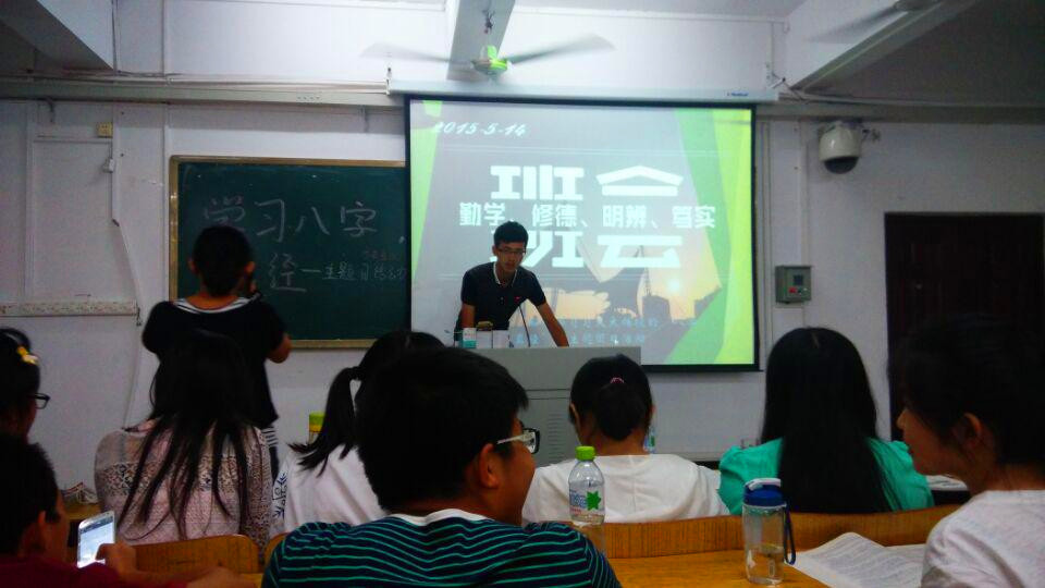 在主题团日活动中,各团支部通过组织团员分享、讨论的方式,学习习近平总书记传授的八字真经,努力将“勤学、修德、明辨、笃实”的嘱托内化于心、外化于行。参与的同学们纷纷积极发言,说出自己对“八字真经”的理解和看法。其中14对外团支部通过播放当代青年的一些主旋律励志视频深化了团日活动主题,14级广告团支部则在活动末尾,通过诵读《少年中国说》的形式,进一步激发了支部同学的热情,增强了支部同学的历史责任感。