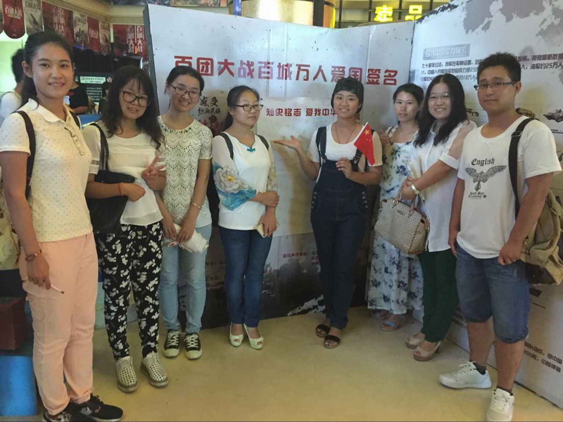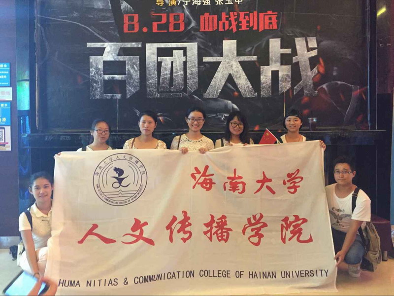 积极响应海南省教育厅和海南大学有关组织开展“开学第一课”的文件精神,特举办《百团大战》观影活动。2015年9月3日下午2点,人文传播学院各党支部集聚中影国际影城,集体观看了大型抗战史诗战争片——《百团大战》。