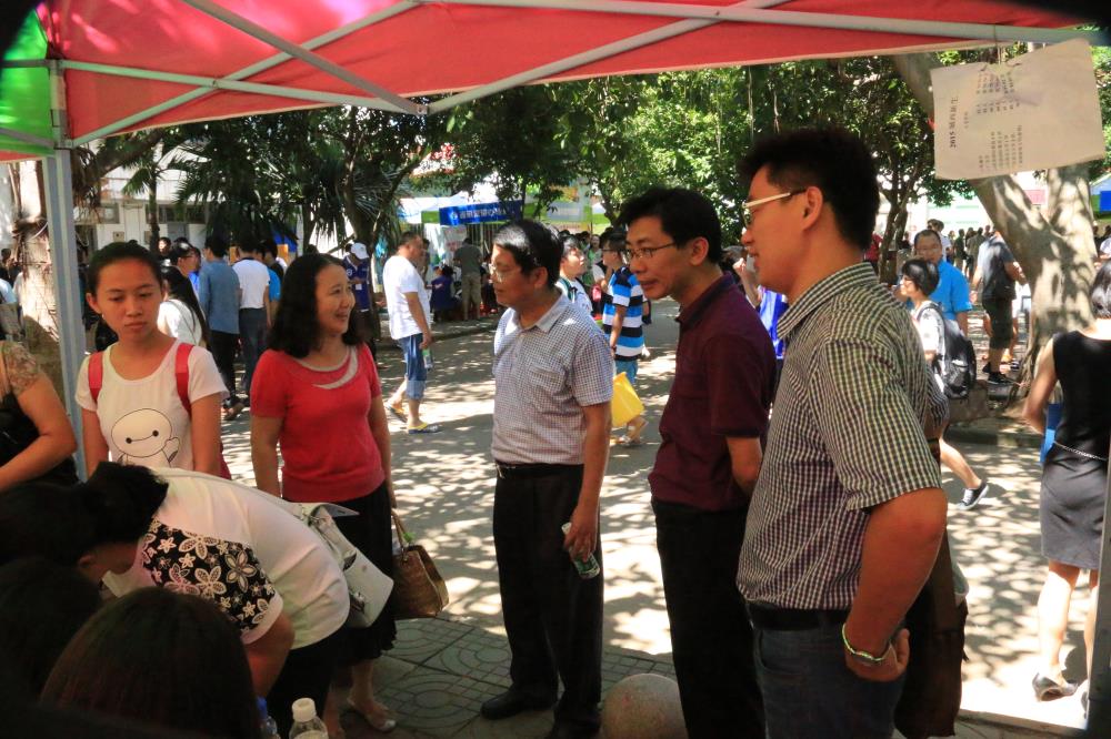 迎新点慰问指导工作,听取了学院党委孙晓媛副书记的简短汇报,了解了学院迎新工作的布置和开展情况,给予了充分的肯定。学院团委熊文军老师具体负责2015级新生工作,学院学工办公衍峰、王森森两位老师一同参加了迎新工作。