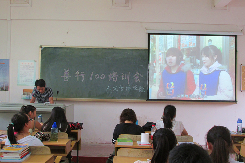 2015年10月24日下午三点,人文传播学院“善行100”培训会在城西、海甸两个校区同时开展。这次培训会由院青协相关负责人主持,共有100余名志愿者参与了培训。