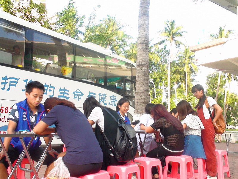 义务献血活动分别在城西校区食堂前和海甸校区二食堂前开展。