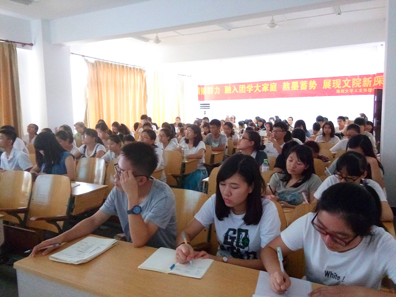 2015年12月1日15:00,共青团海南大学团校人文传播学院分团校第六期学生骨干培训班第三讲在海南大学城西校区4A05教室顺利举行。人文传播学院学工办主任公衍峰老师担任主讲嘉宾。培训课堂气氛活跃,严肃认真,同学们仔细聆听,认真记录。