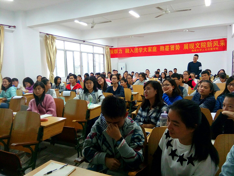 2015年12月15日15:00,共青团海南大学团校人文传播学院分团校第六期学员培训第四讲于海南大学城西校区4A05教室顺利举行。人文传播学院学工办王森森老师担任主讲嘉宾。