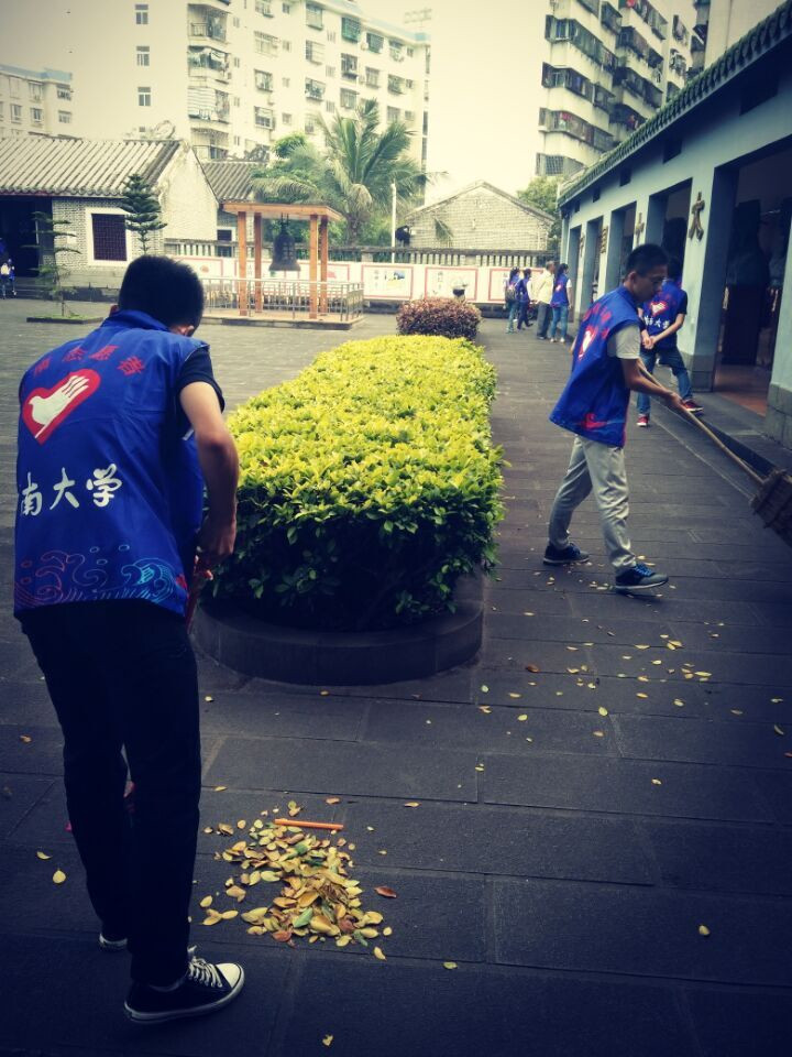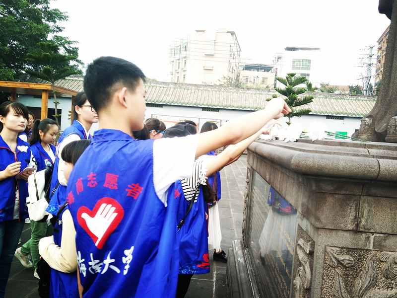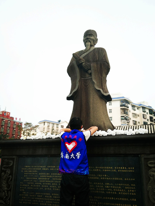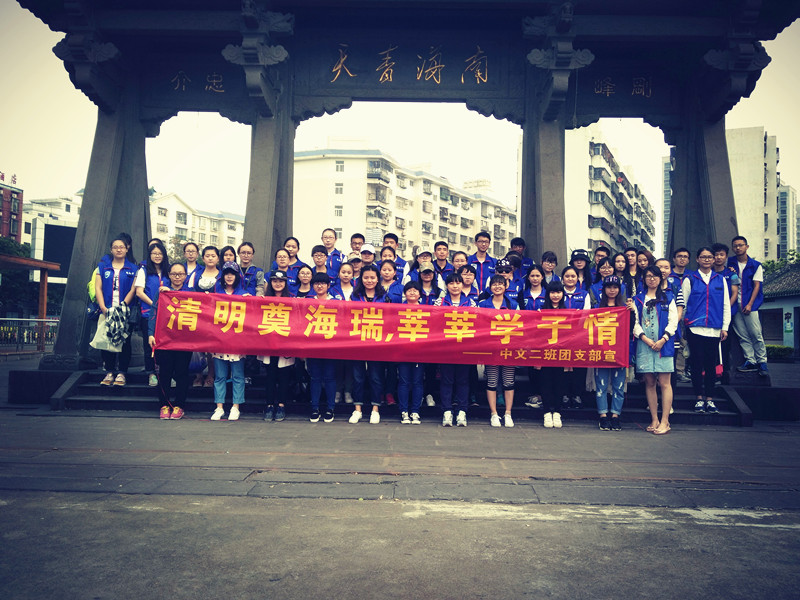 2015级中文二班团支部组织班级同学前往海口市海瑞故居海瑞塑像前进行祭奠凭吊,同时开展义务清扫海瑞故居卫生志愿服务活动。