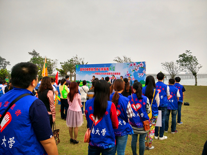 为深入推进社会主义核心价值体系建设,弘扬传统文化,传承中华文明,倡导低碳祭扫。2016年4月1日,由海南共青团秀英区委员会、秀英区教育局主办,秀英子弟学校和人文传播学院协办的清明节文明祭祀暨青少年风筝DIY放飞活动在海口市秀英区西秀海滩举行。团省委学校部部长冯翔,秀英区教育局,秀英区团委等领导出席活动。参加人员有秀英区团委工作人员、海南大学人文传播学院志愿者、秀英子弟学校学生和家长等共150人。