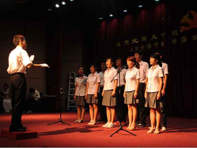 各年级专业同学朗诵的《我爱你中国》、《革命的回响》、《中国年轮》、《大堰河,我的保姆》、《光的赞歌》等精彩诗篇也赢得了观众的阵阵掌声。诗句歌咏祖国,诗声传递热情!很多代表队还在朗诵的基础上加入了歌唱、舞蹈、书法等富有创意的艺术表现形式,一首首诗歌被他们演绎的形象动人。而由人文传播学院文工团带来的歌曲《爱我中华》、舞蹈《心若在》也点燃了全场的气氛,场下掌声雷动,观众们热血沸腾,他们被台上声情并茂的朗诵和精彩绝伦的表演深深地感动着。 经过评委老师们的认真评判,最终名次确定:08广告获得一等奖,09对外汉语、10广告获得了二等奖,09广告、10戏影、08中文获得了三等奖。本次大赛还评出优秀奖、最佳创意奖、最佳舞台风尚奖若干。 诗歌朗诵比赛在一片热烈的掌声中圆满落幕。通过本次大赛,同学们不仅表现出了高超的朗诵水平,更重要的是抒发了自己爱国爱党的热情。让我们以诗歌向亲爱党和祖国献礼,愿伟大的祖国在我们这一代的努力下会更加繁荣! 人文传播学院通讯部:侯晓宁