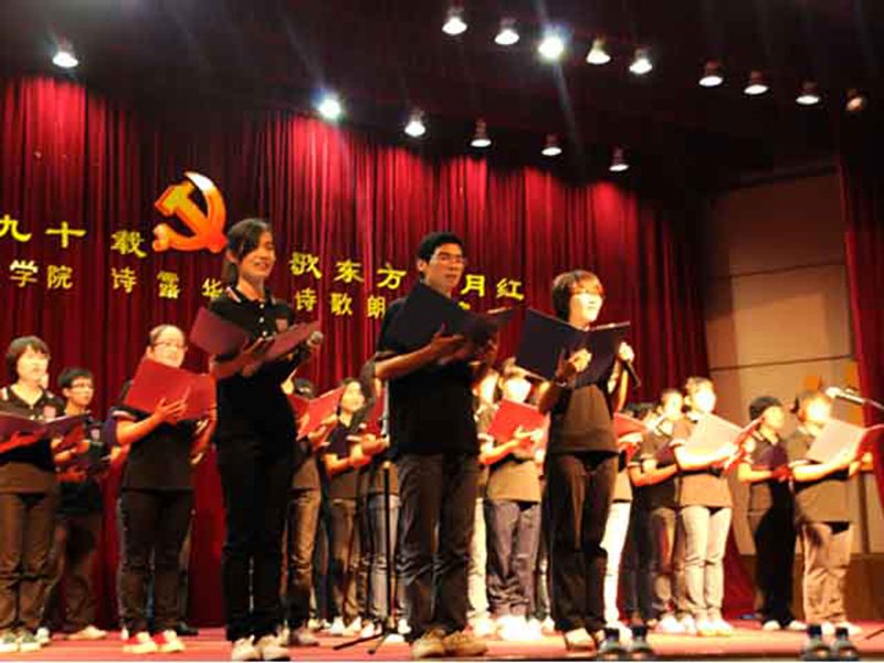 为了热烈庆祝中国共产党成立九十周年,弘扬红色革命精神,传诵红色革命经典,人文传播学院团委学生会于5月15日晚上7:00在学校原行政楼二楼报告厅举行“建党光辉九十载,踏歌东方五月红”诗露华语诗歌朗诵比赛。本次比赛邀请到人文传播学院党委副书记孙晓媛老师、中文系刘显老师、中文系张硕果老师、戏剧影视文学系鞠斐老师、戏剧影视文学系李骞老师担任评委,学院团委书记谢庚全老师、学工办公衍峰老师、学工办王森森老师、农学院学工办王远露老师作为嘉宾出席活动。 比赛开始前,一首lol下注