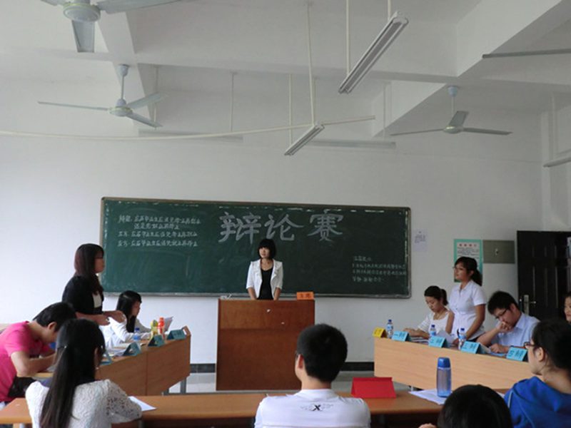 本次班级对抗辩论赛分为三场,第一场辩论双方是11级对外汉语和11级戏剧影视文学专业,辩题为“大学生应该先择业再就业还是先就业再择业”;第二场是11级汉语言文学1班和2班就“大学食堂是否应该涨价”一题进行辩论;第三场是11级汉语言文学1、2班另外两支队伍进行辩论,辩题为“大学教育是否应该以市场为导向”。三场辩论均在开篇立论、攻辩环节、攻辩小结、自由辩论和总结陈词五个环节下有序进行,辩论各方势均力敌,观众仿佛置身无硝烟的战场。每一场辩论结束都有评委做精妙点评,及时指出辩论双方优劣所在。