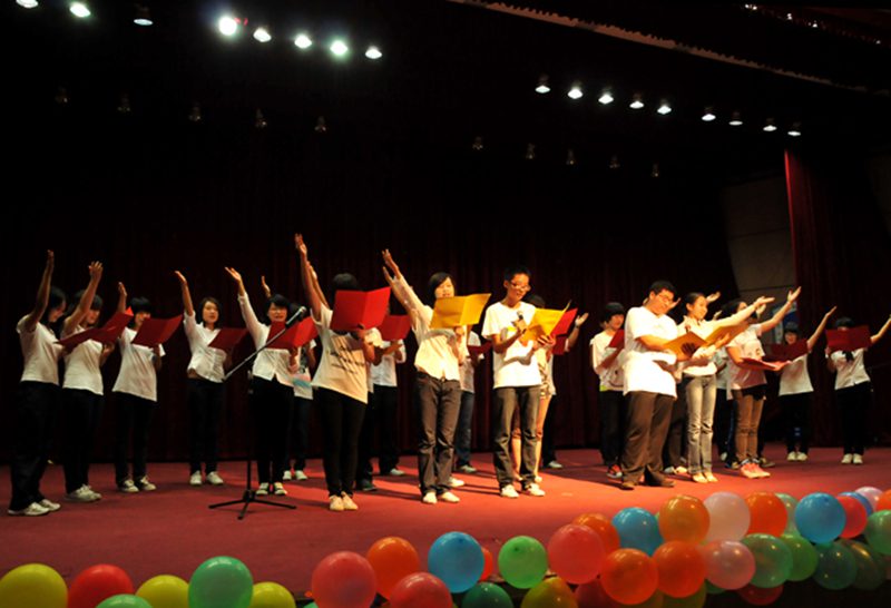 人文传播学院五四歌咏比赛暨五四表彰大会于5月6日下午三点在三教行政报告厅成功举办。人文传播学院党委副书记孙晓媛老师,团委书记谢庚全老师,学工办公衍峰老师、王森森老师、熊文军老师出席表彰会;此次歌咏比赛还荣幸的邀请到人文传播学院毕研韬,高海洋,高智,鞠斐四位专业老师担任评委。 本次晚会以“忆峥嵘岁月,谱青春诗章,乘文明之风,铸明日辉煌”为主题,在同学们的期待中拉开帷幕。此次晚会分为“昨日、今日、明日”三个篇章,将五四精神以别样的方式传递给了人文学子。晚会中,各参赛团体将十八般武艺一一呈现给观众,充分展现了我人文学子能文能武的精神风貌。同时,本次晚会还为此前评比出的优秀个人,优秀团体等获奖者颁奖。晚会以诗朗诵,歌伴舞的比赛形式,展现五四精神和当代青年人的时代风尚,最终通过经过激烈的角逐,09级戏剧影视文学专业脱颖而出,以一首别具匠心的“最炫戏影风”拔得头筹。晚会在同学们的欢呼中落下了帷幕。
