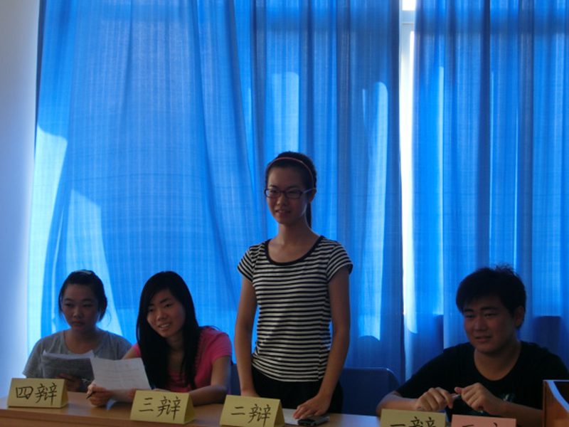 10月21号下午,人文传播学院辩论队选拔赛初赛在5教321、322室举行。院学生会主席韩啟雄到场指导,到场嘉宾有:院辩论队队长李晓鹏、优秀辩手刘文杰、张倩、王炯懿、尹舒慧和张静。